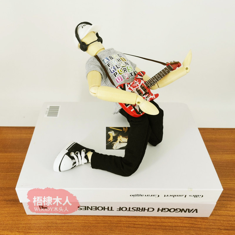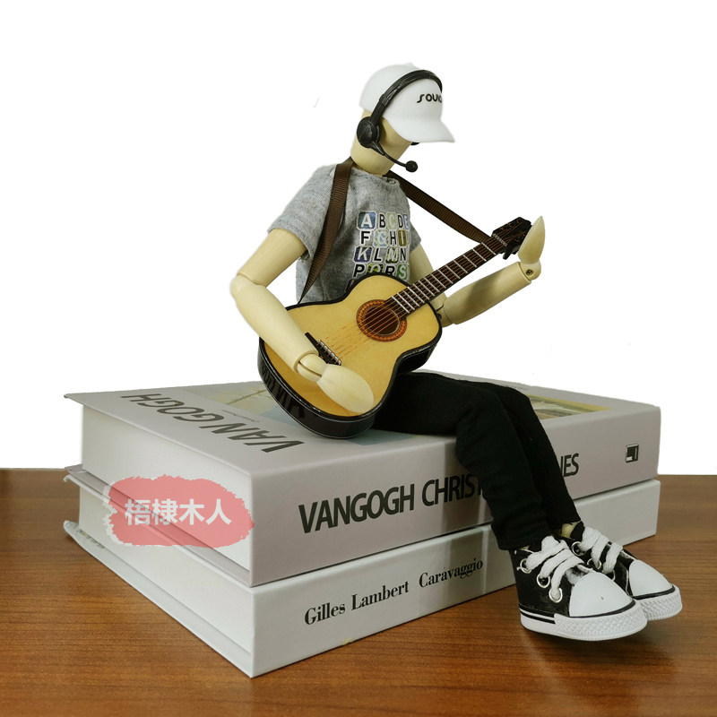 📚 梧棣木人创意弹吉他木偶摆件歌手木人摆件弹奏吉他手摆件音乐摆件