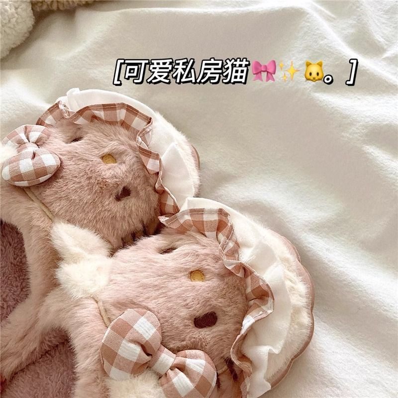 📚 HelloKitty棉拖鞋女款可爱卡通冬季厚底防滑加绒加厚保暖毛毛拖鞋