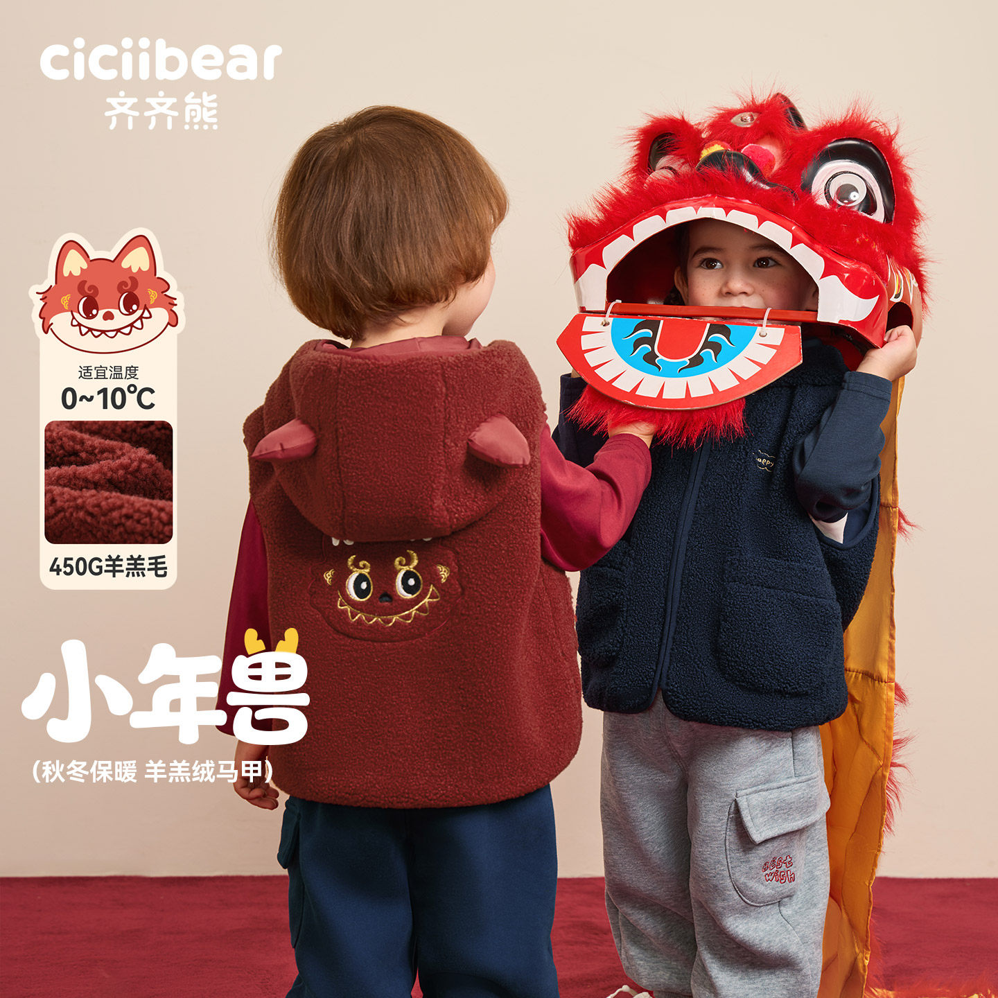 🎁首先,让我们聊聊这款“小年兽450G羊羔绒男童马甲”。乍一看,它的设计就让人眼前一亮,充满浓厚的节日氛围。身穿这款马甲,仿佛穿越到了热闹的新年,感受到了浓浓的年味。