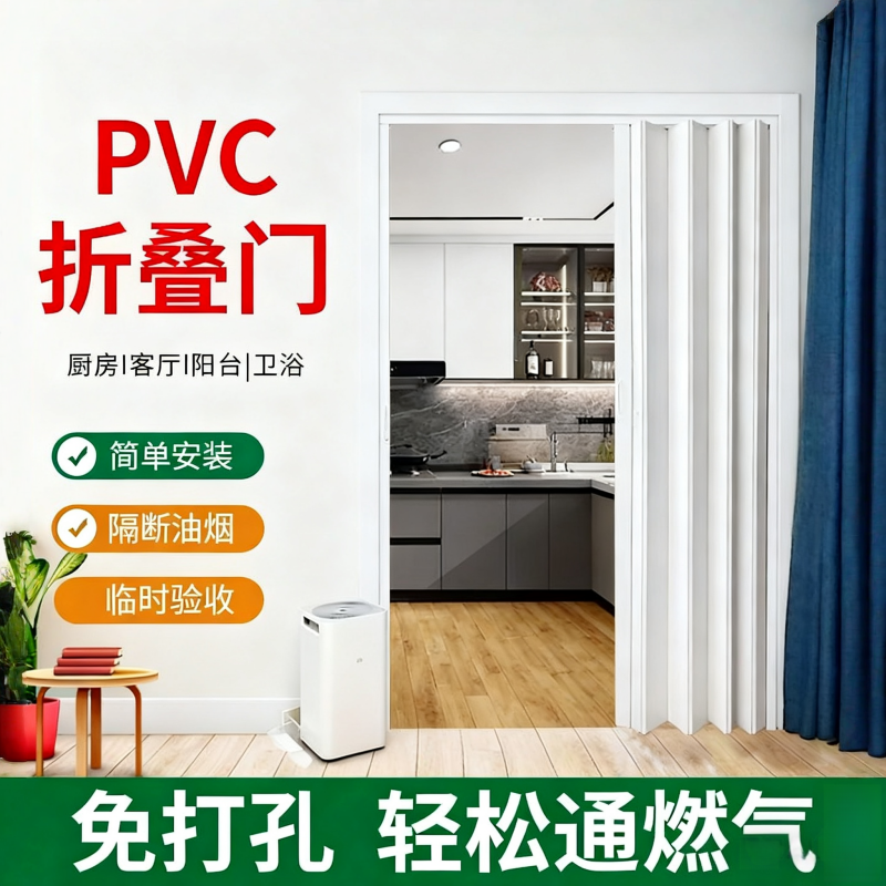 📚 厨房半圆开通燃气隔油烟免打孔天然气验收折叠门塑料一次性临时门