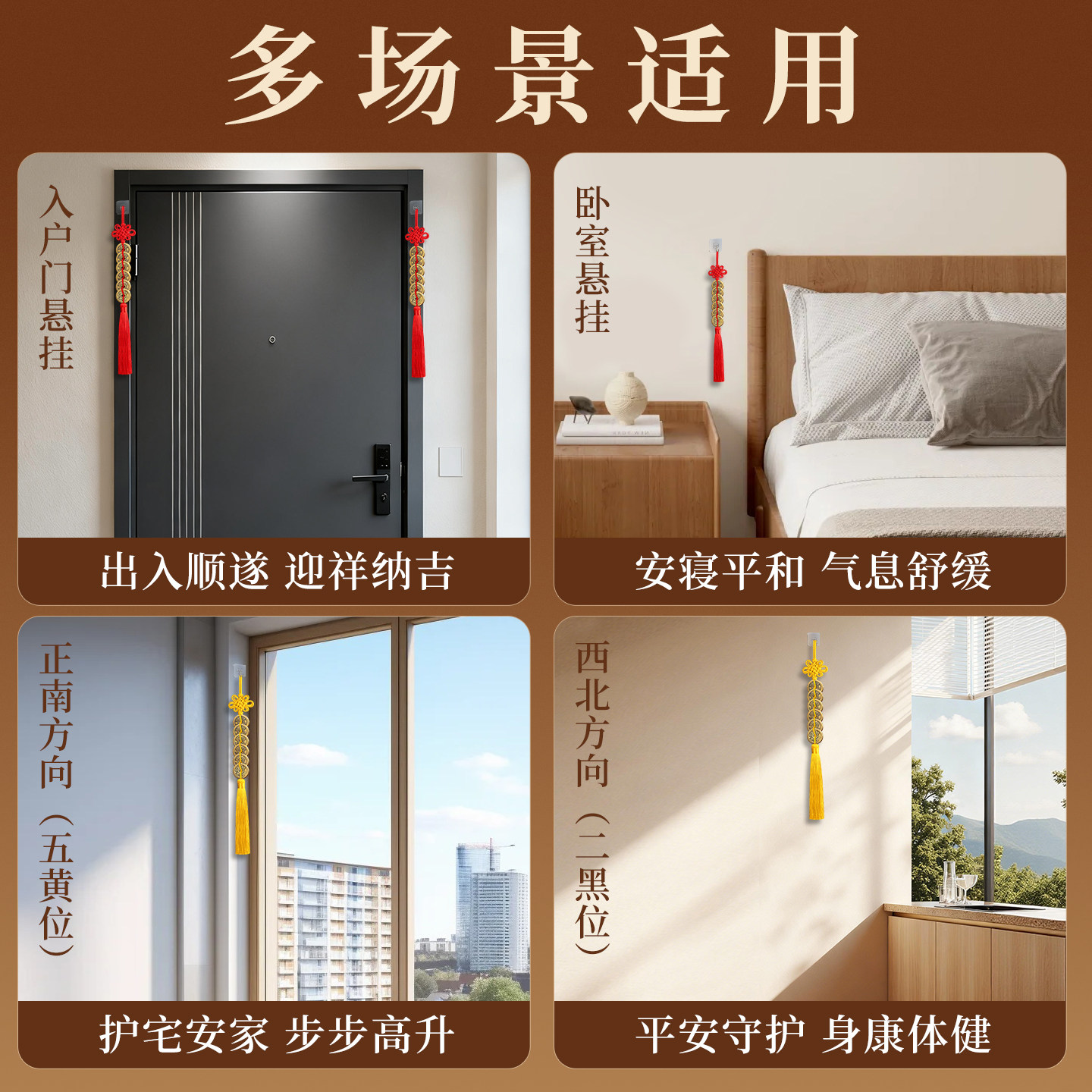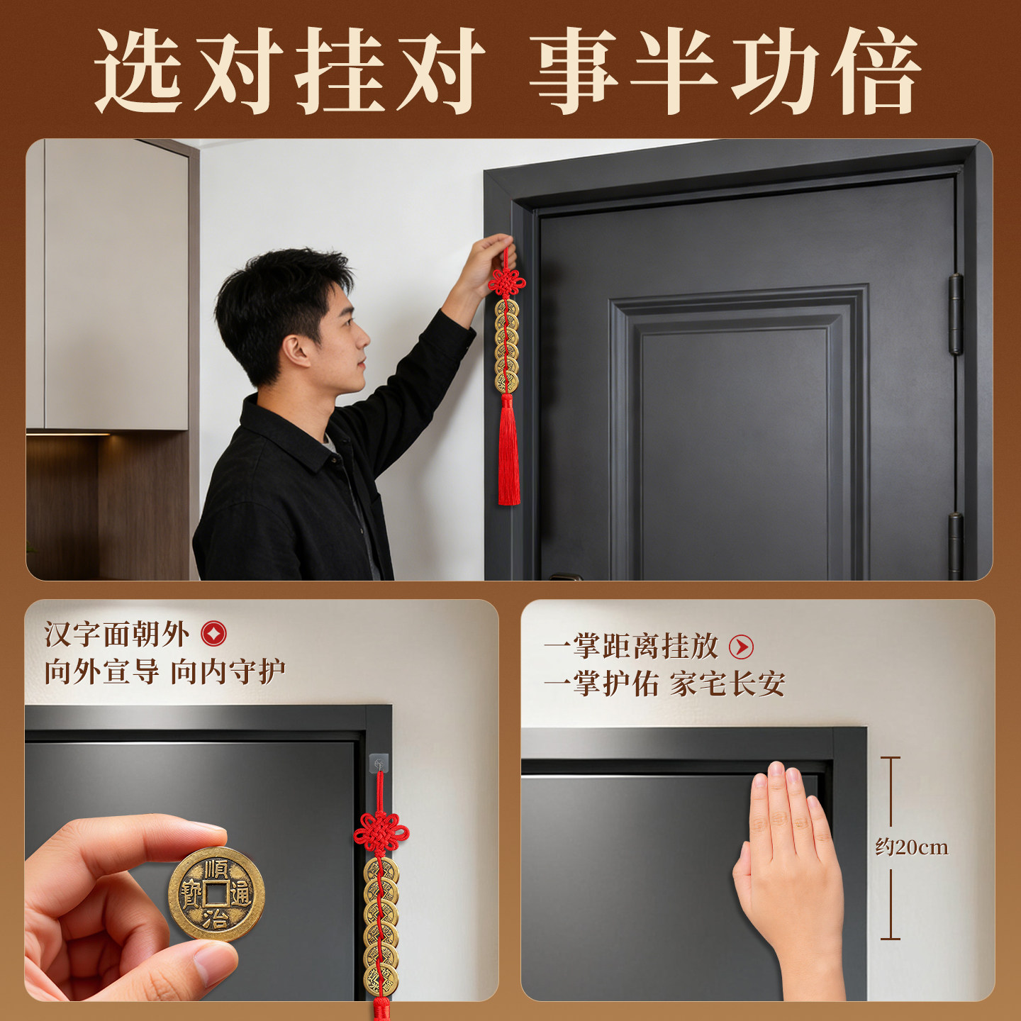 📚 六帝铜钱加一个铜葫芦挂件黄绳真品古币6帝钱入户门五帝钱吉祥结