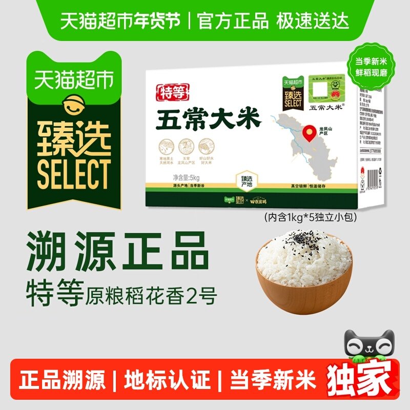 📚 臻选五常大米田作密码溯源原粮稻花香2号特等东北大米箱装5kg