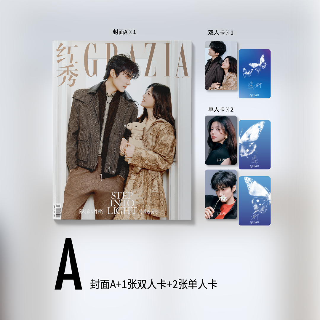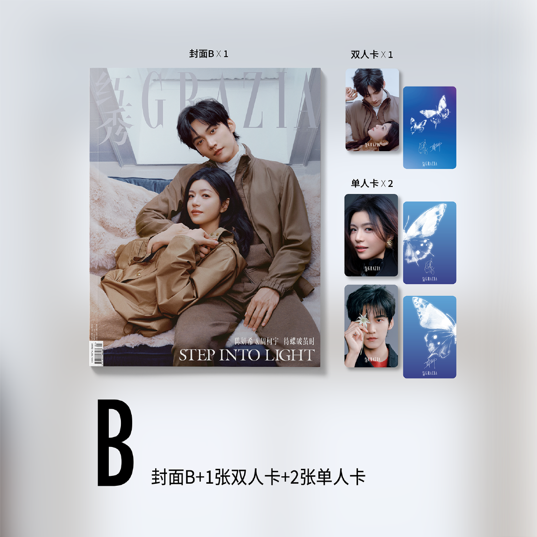 📚 现货 官方版 红秀 748期 周柯宇 陈妍希C版套装:A+B封面+4张双人卡+4张单人卡 红秀GRAZIA杂志2026年1月 狙击蝴蝶封面 含内页20P