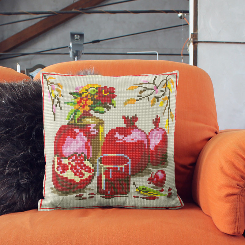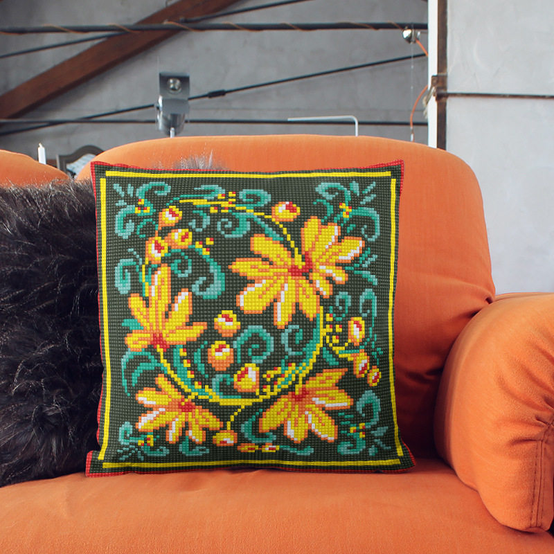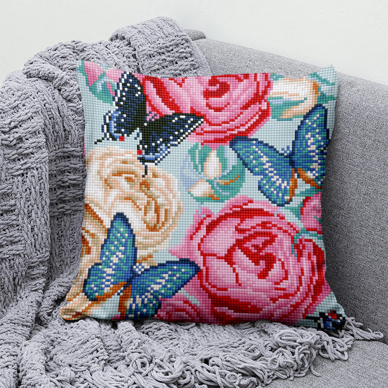 📚 绒绣抱枕套中国风花朵沙发枕套半针腰靠套枕芯