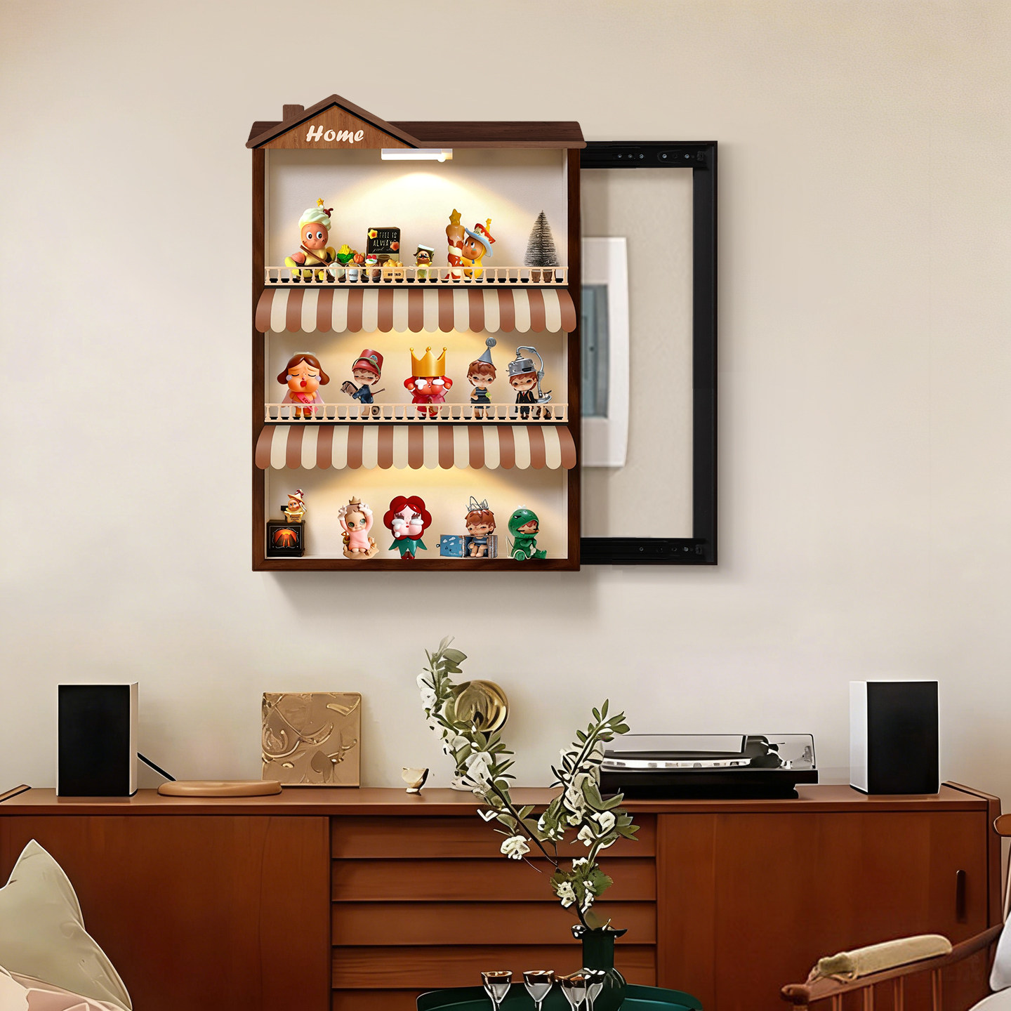 📚 竖版电表箱装饰画2026新款手办盲盒收纳配电箱遮挡挂画推拉式壁画