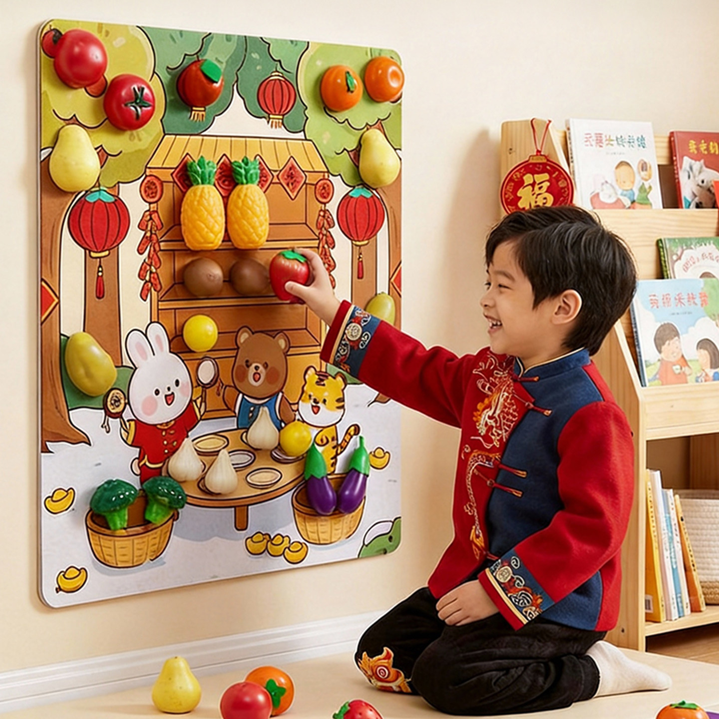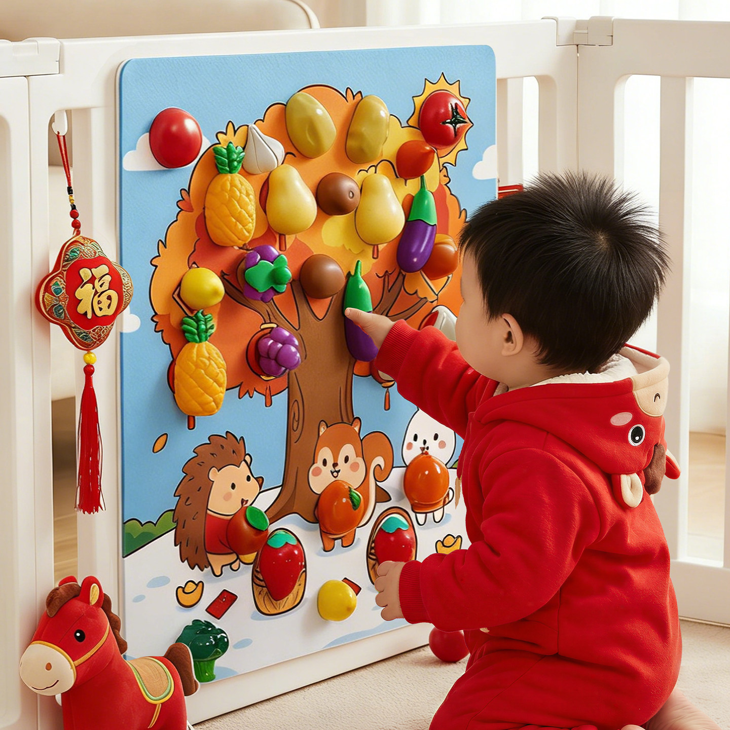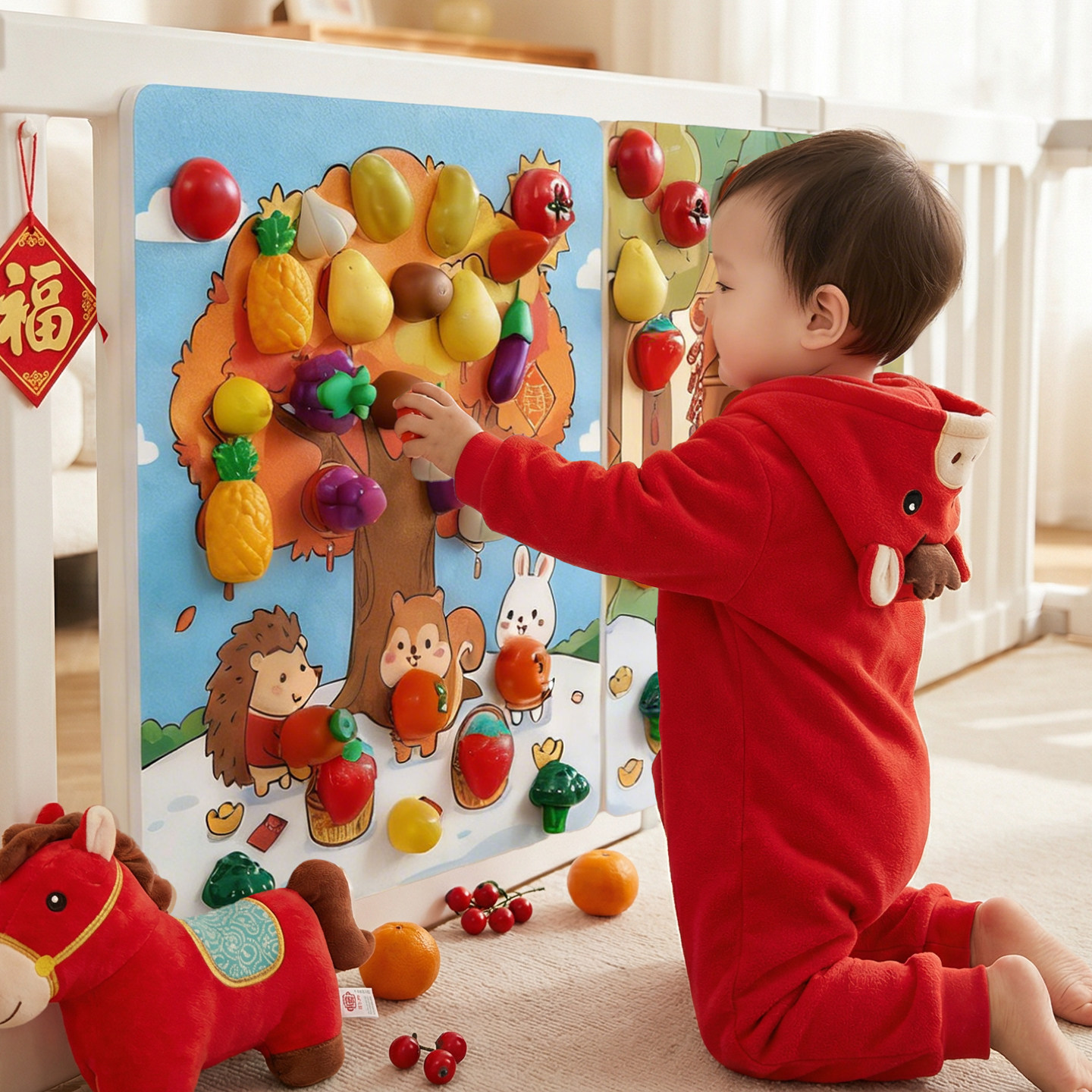 📚 新年礼物儿童水果切切乐毛毡板蒙氏早教忙碌板蔬菜可啃咬围栏玩具