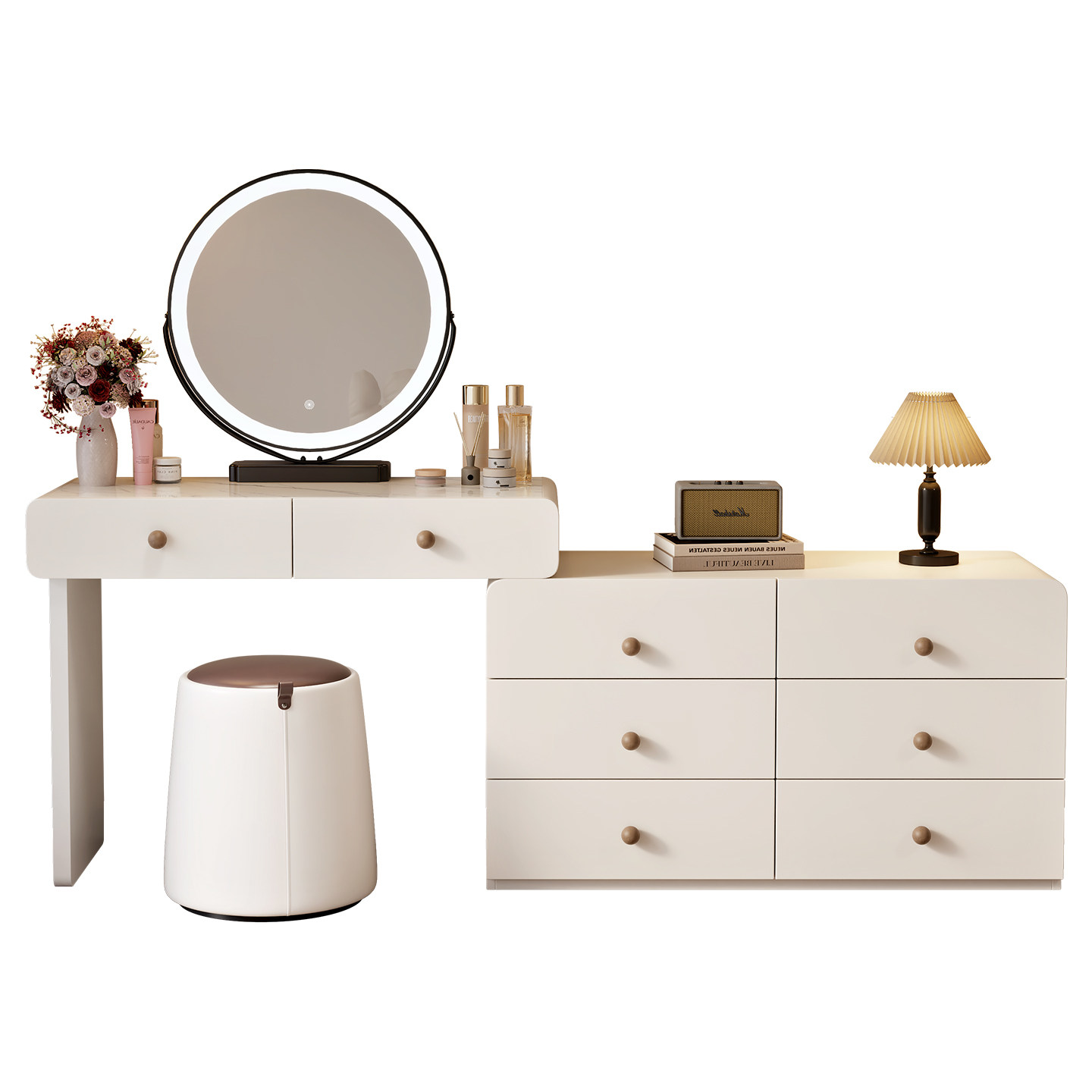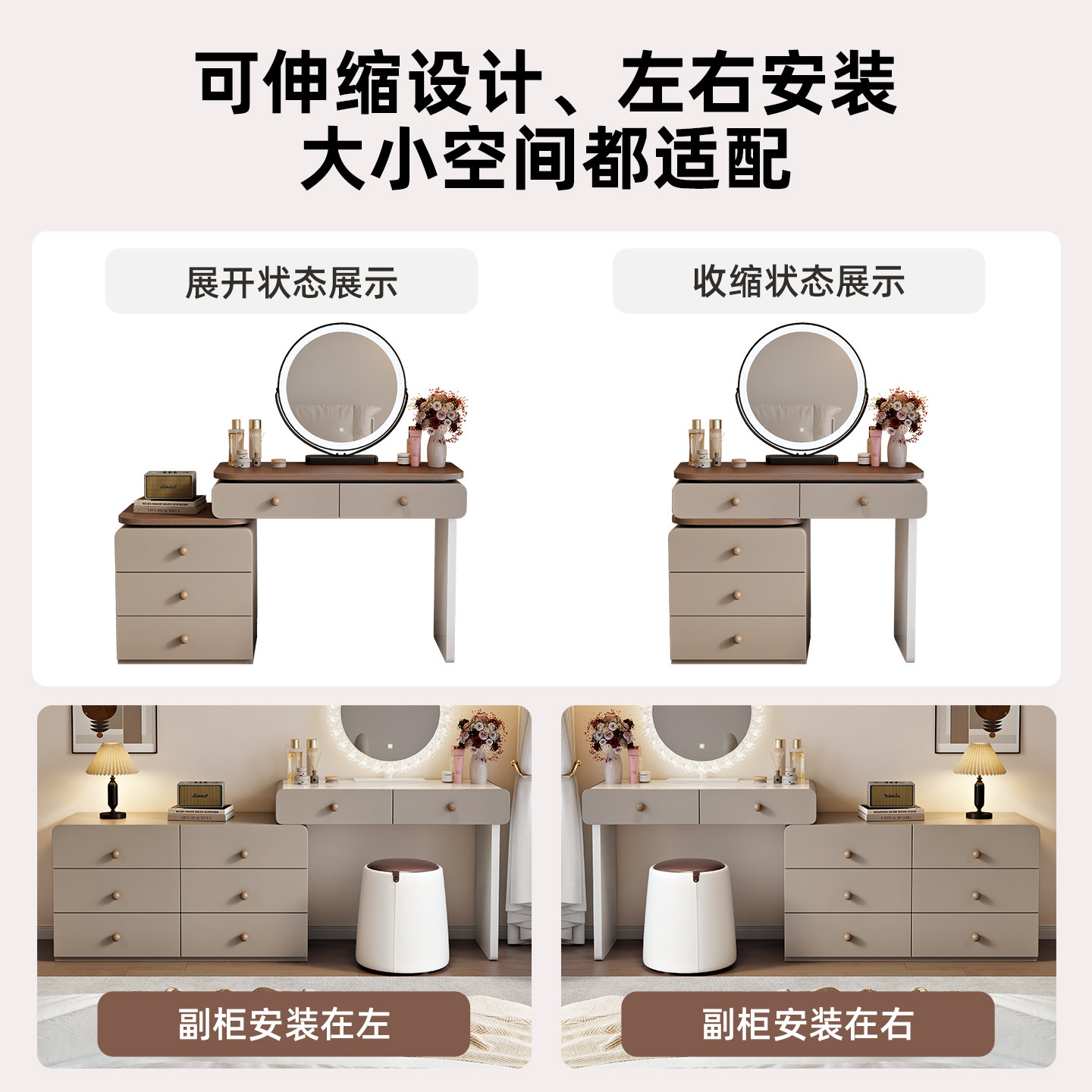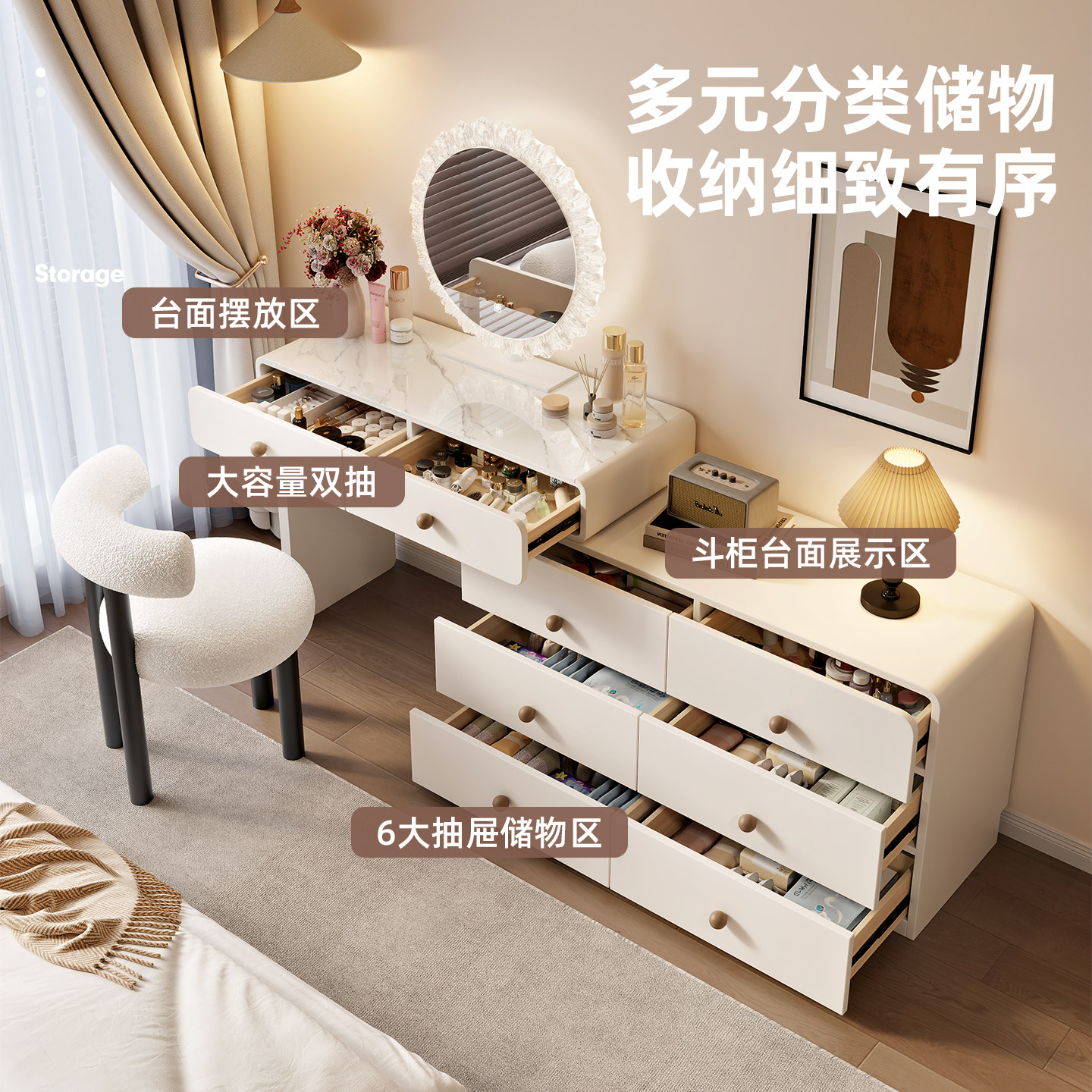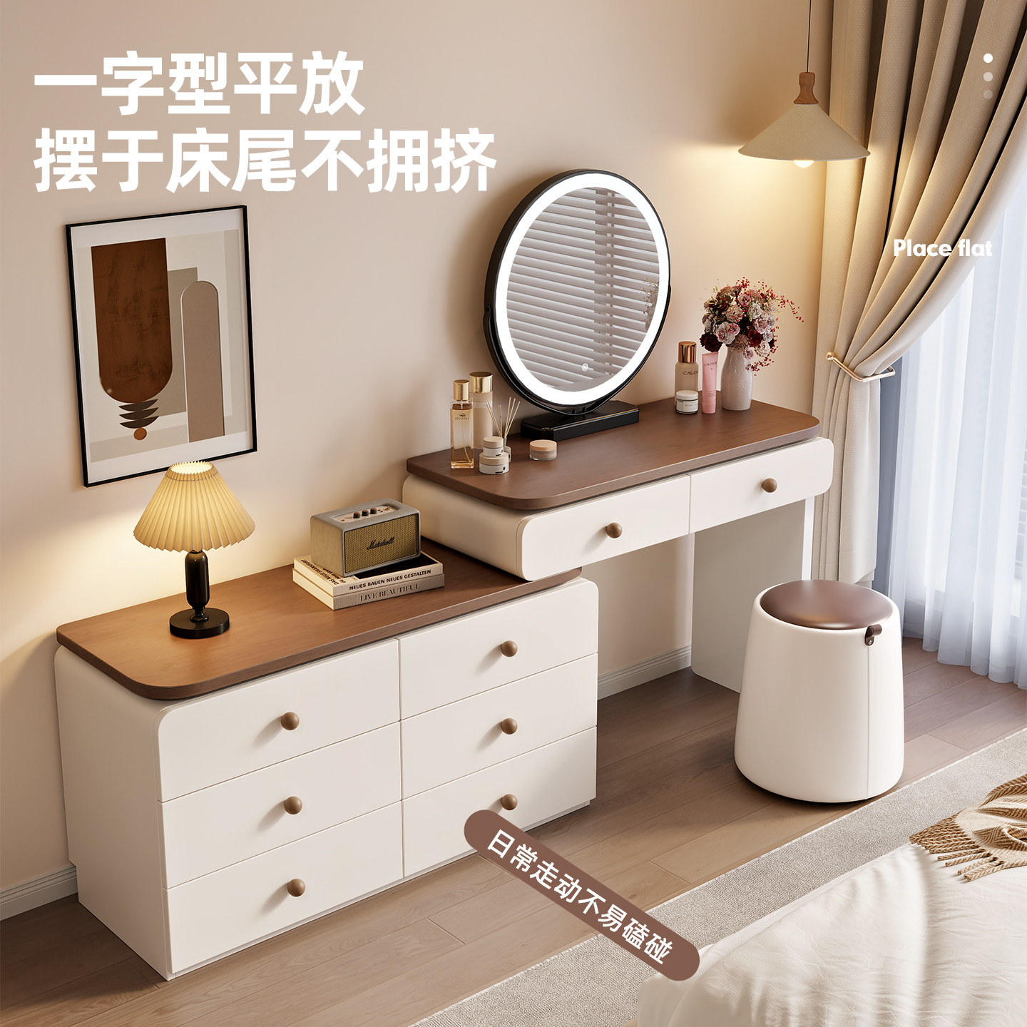 📚 新款中古奶油风加厚梳妆台卧室现代简约化妆桌斗柜一体收纳化妆台