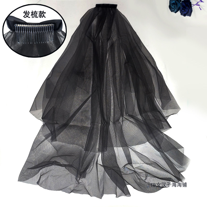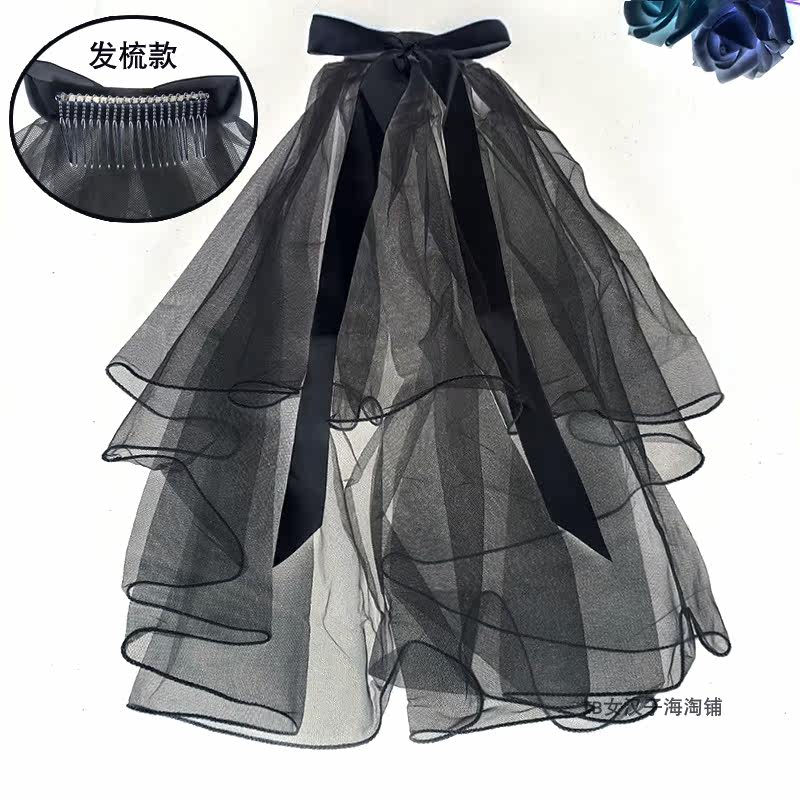 📚 黑色头纱女个性朋克求婚领证登记新娘拍照道具神器新款头饰长短款