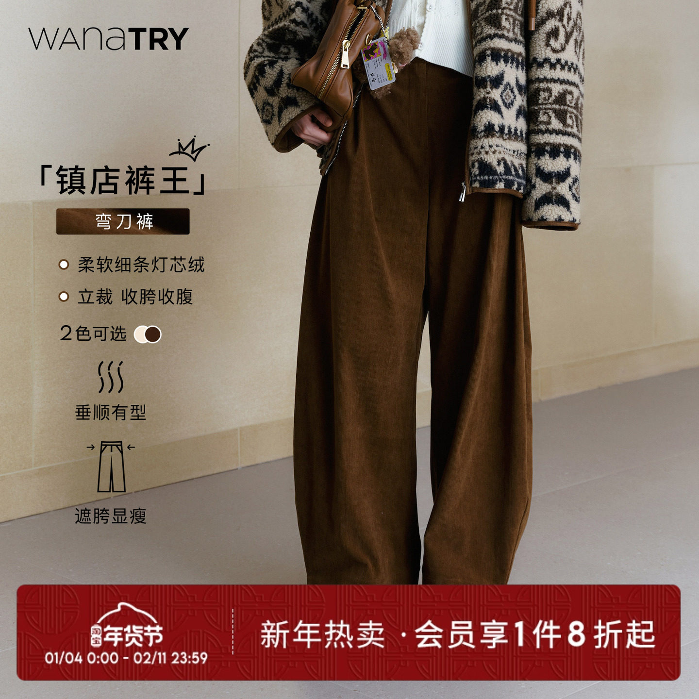 📚 【镇店裤王】wana try灯芯绒弯刀阔腿裤冬季新款显瘦女款休闲裤