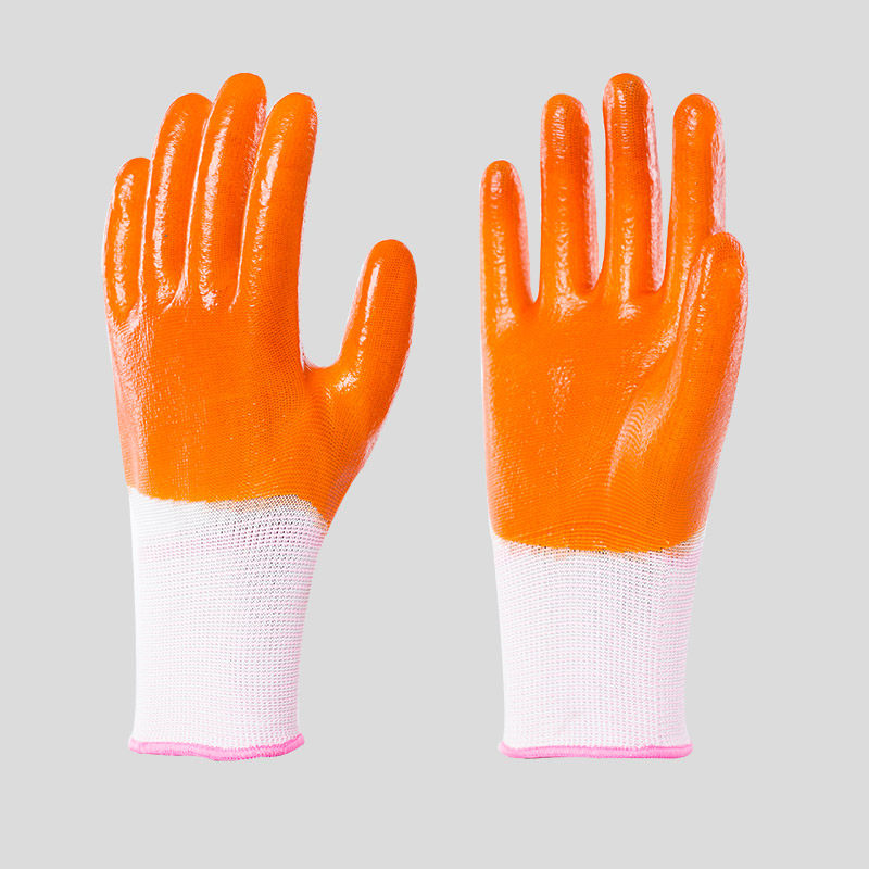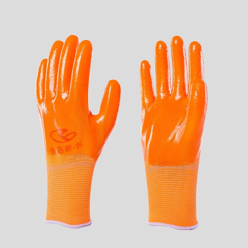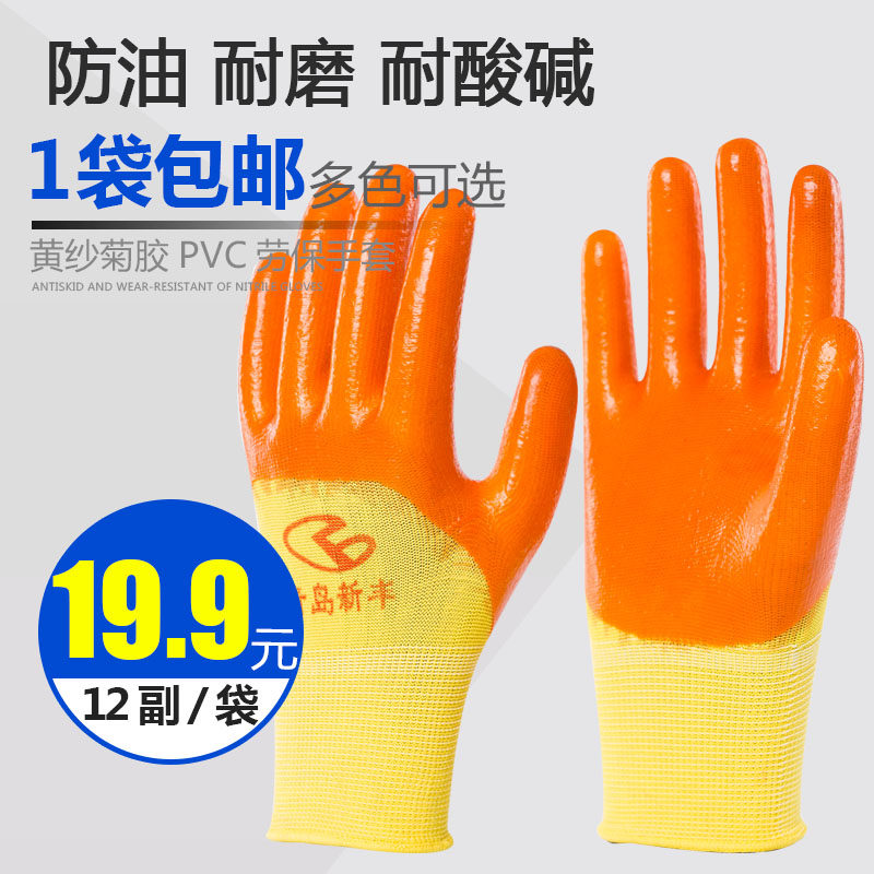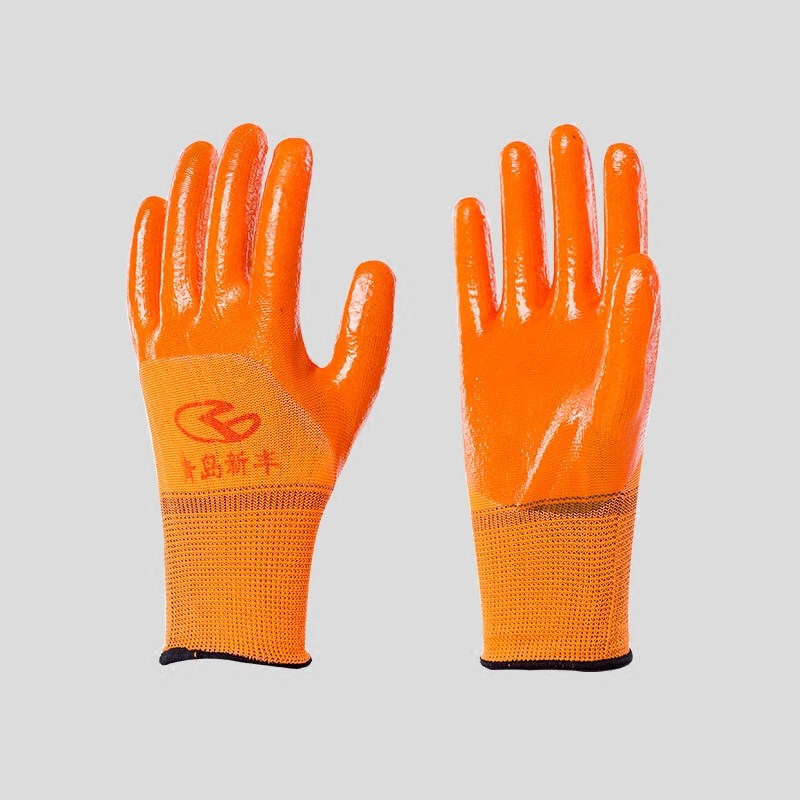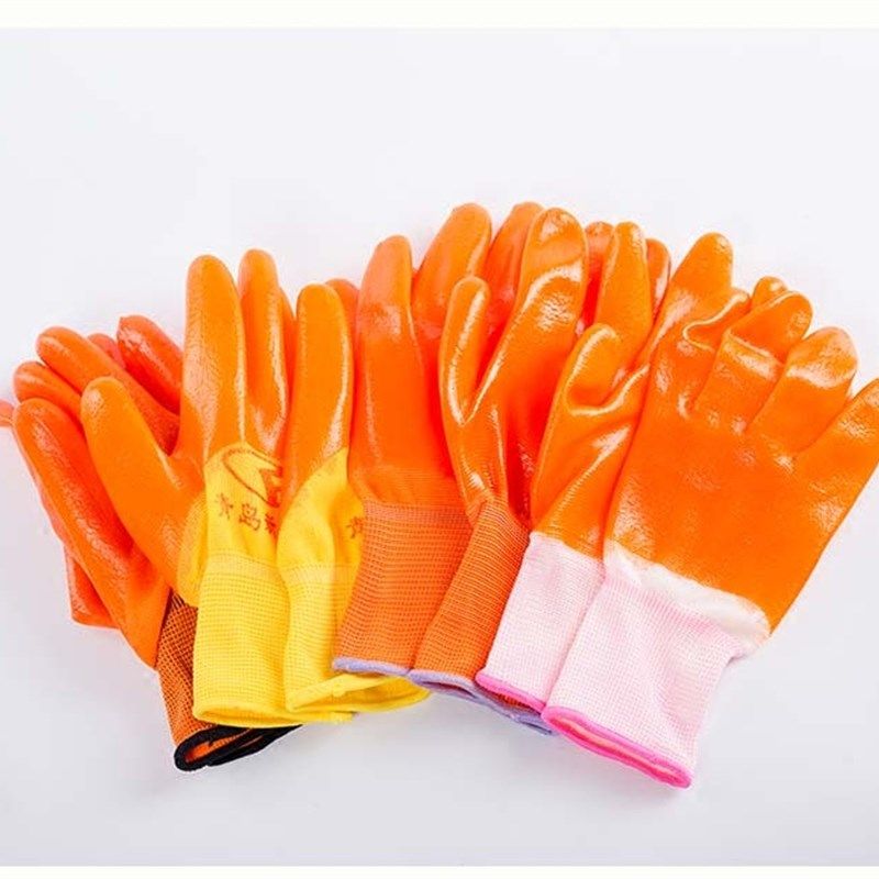 📚 青岛新丰桔色PVC半挂浸胶手套防水防油保暖加绒渗透耐磨建筑工作