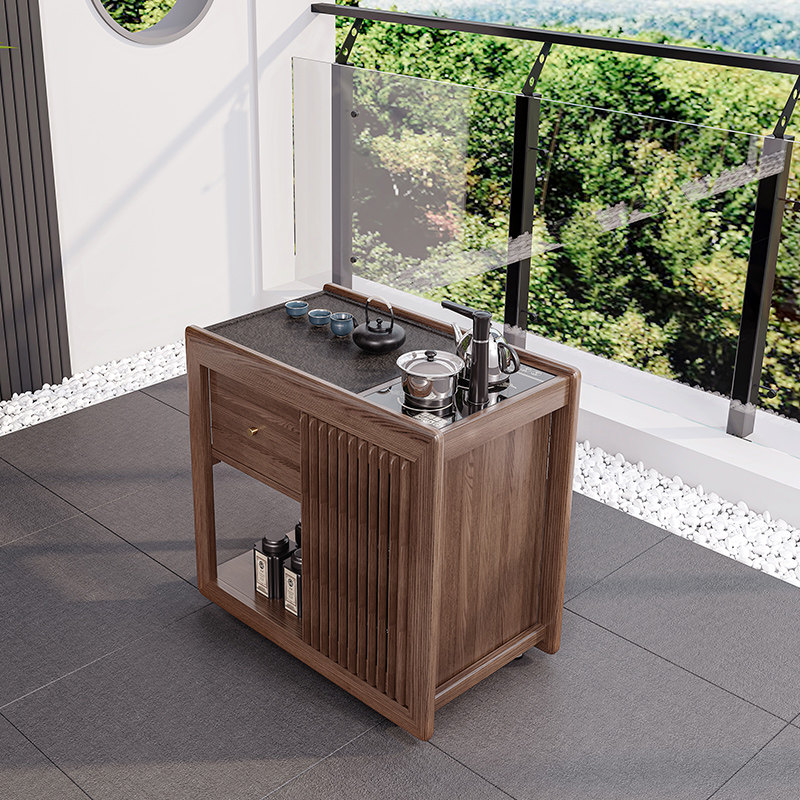 📚 简约全实木阳台茶桌可移动泡茶台烧水一体小型家用乌金石功夫茶台