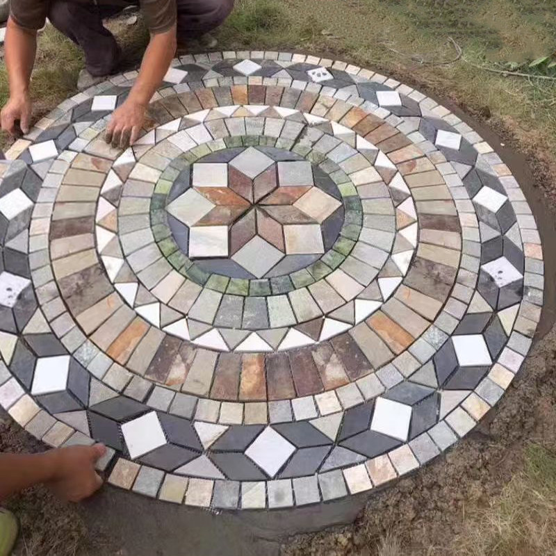 📚 花园地砖天然文化石风水盘别墅庭院室外户外仿古地砖石材拼花防滑