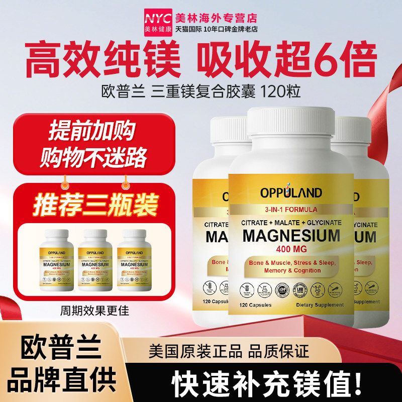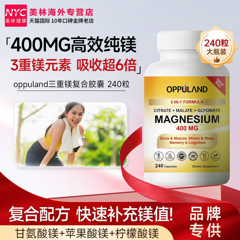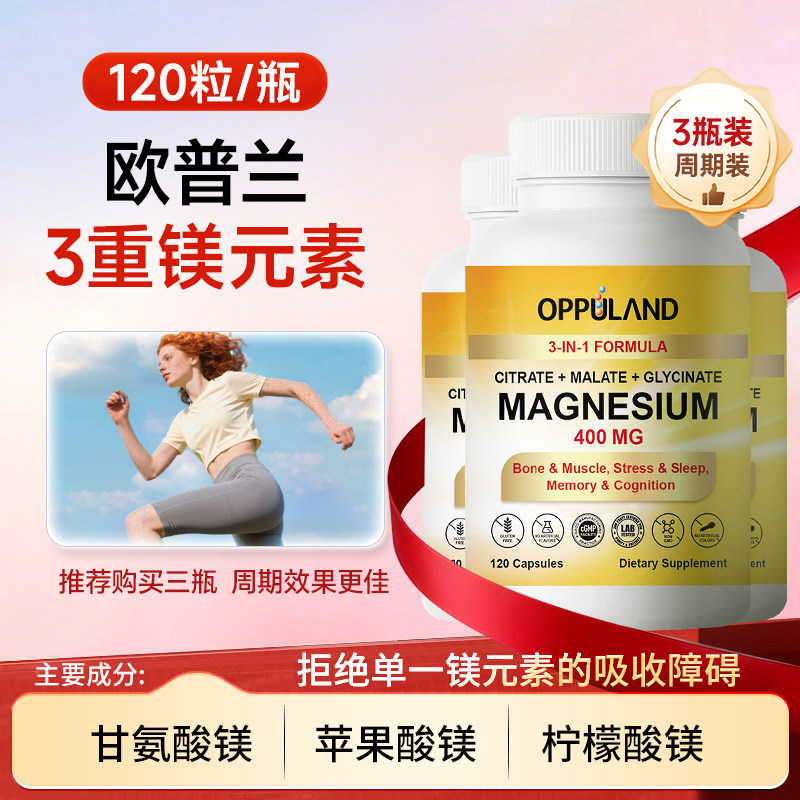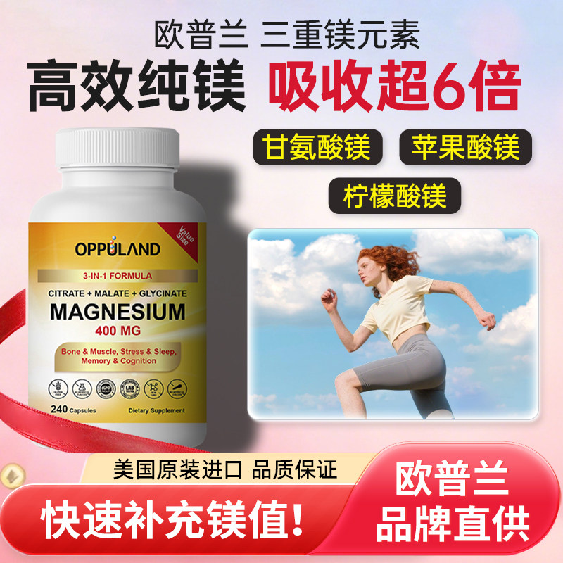 📚 甘氨酸镁胶囊钙镁元素补充剂女士成人D3K2镁进口柠檬酸镁粉三合一