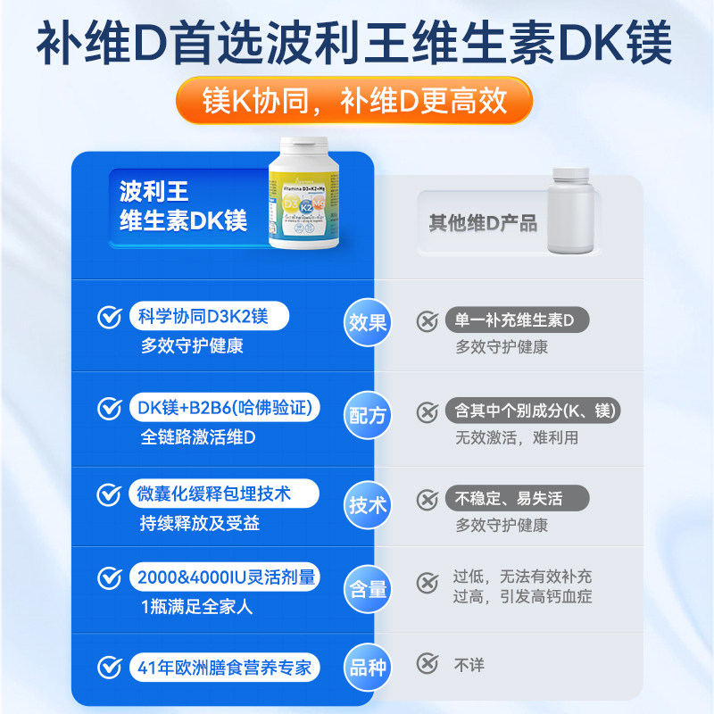 📚 波利王西班牙维生素dk镁d3k2镁三合一儿童青少年甘氨酸镁2000iu
