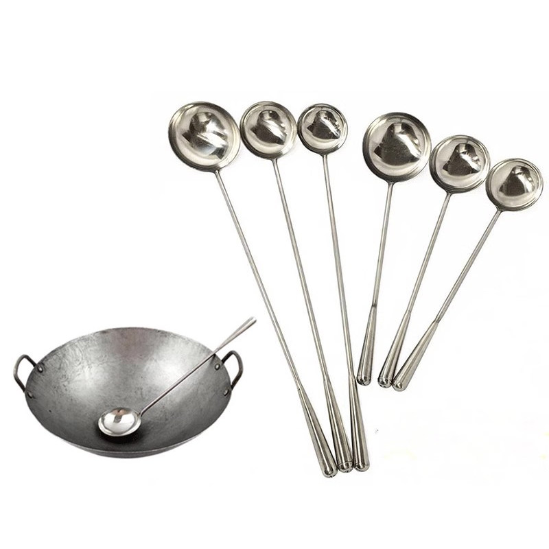 📚 商用打菜勺长柄实心铁勺炒勺不锈钢炒菜勺大汤勺厨师专用勺子大号