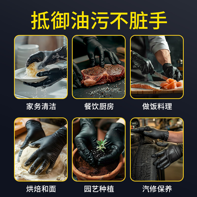 📚 麦迪康一次性手套加厚耐用黑色丁腈橡胶pvc食品专用餐饮厨房家务