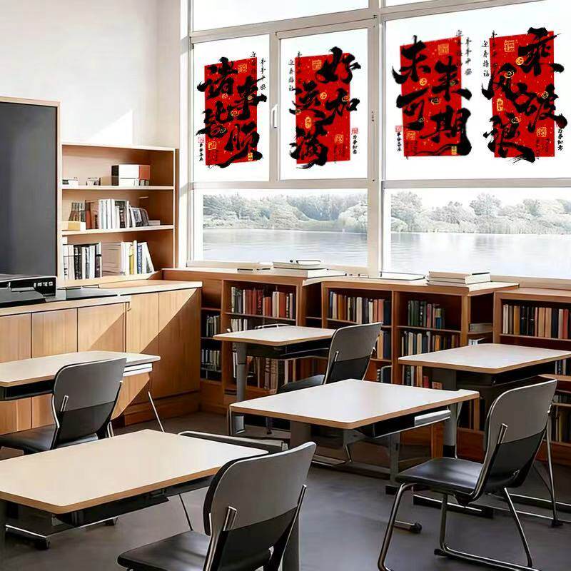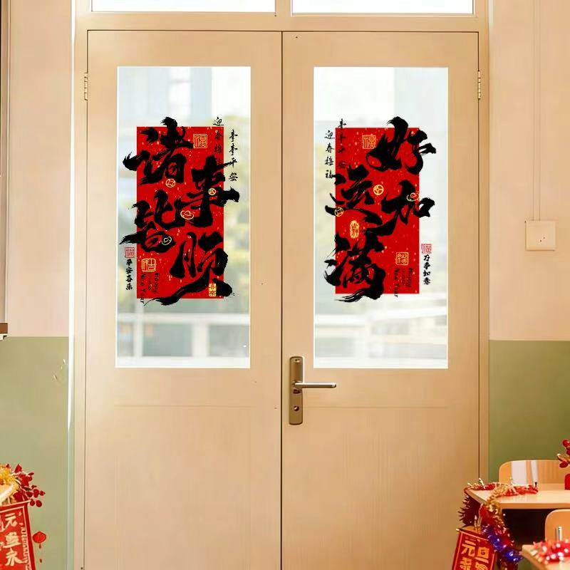 📚 元旦教室装饰场景氛围布置窗花2026新款马年静电贴春节新年玻璃贴