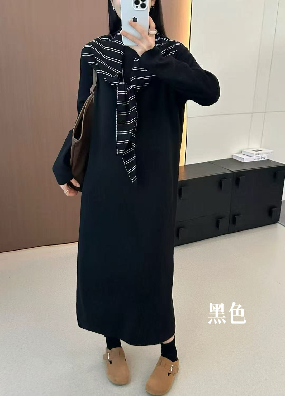 📚 A403新款秋季宽松条纹配围巾2件套百搭圆领T恤女套头针织连长裙
