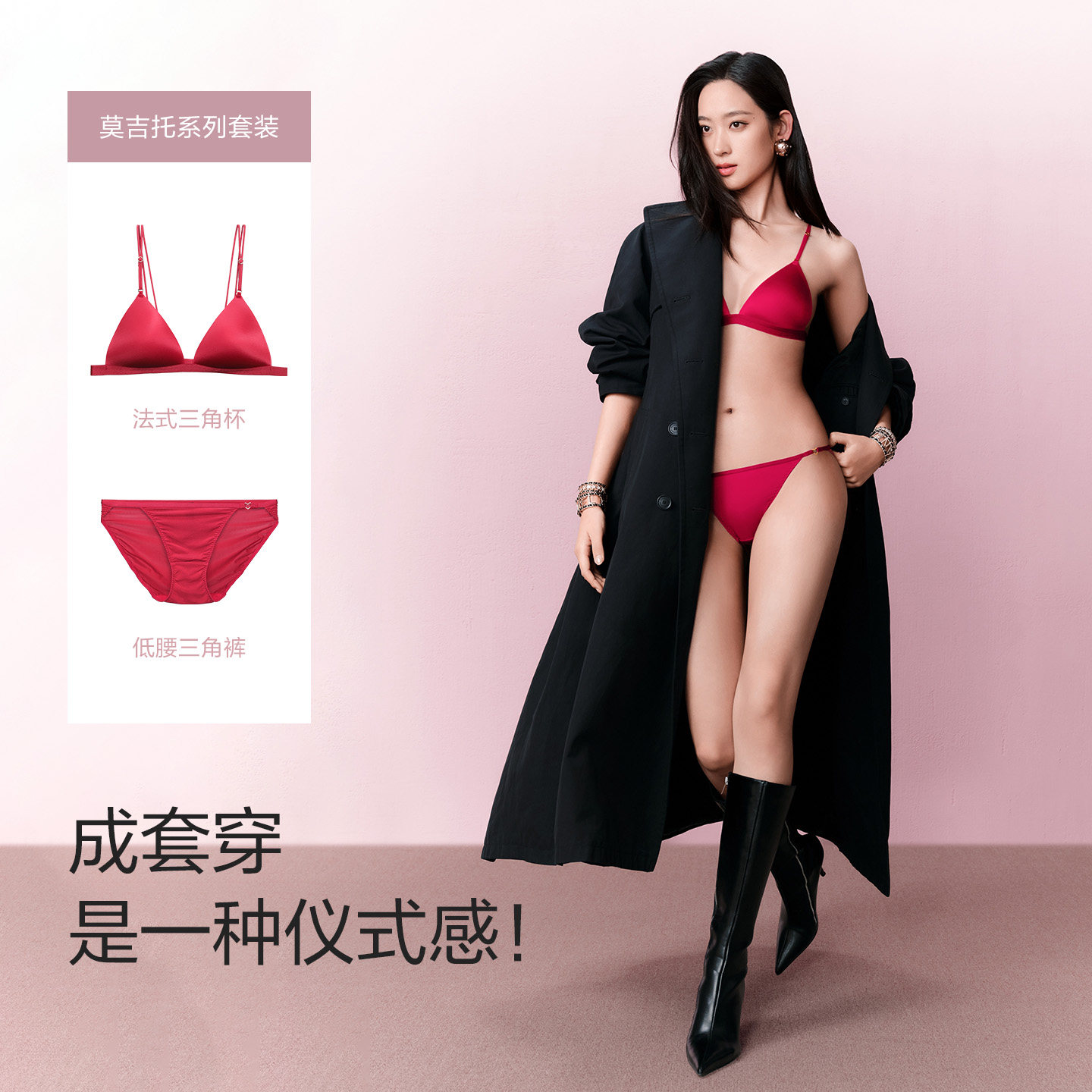 📚 【莫吉托】芬狄诗内衣女法式三角杯小胸细肩带美背本命年红色文胸