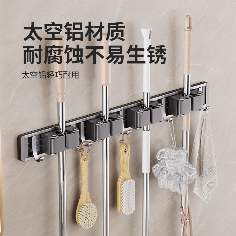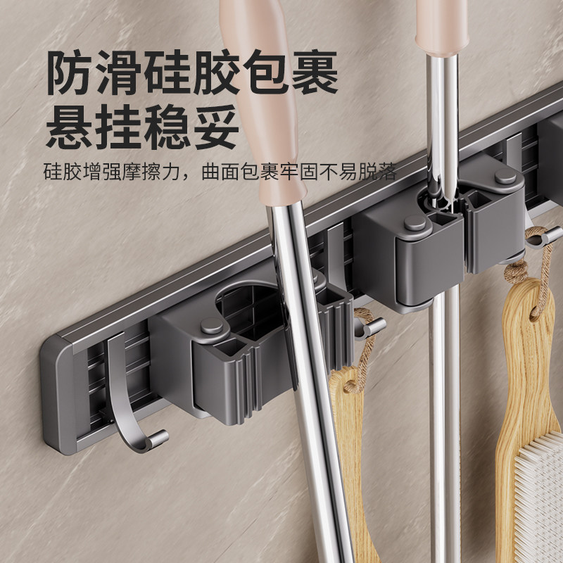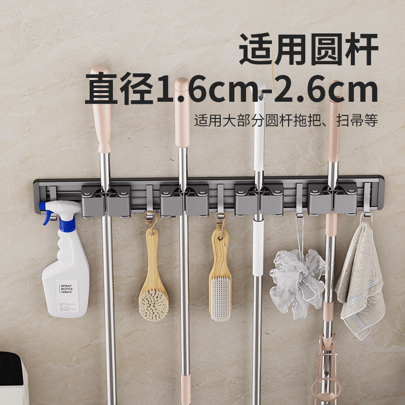 📚 沐笙歌拖把架免打孔壁挂阳台浴室卫生间卡扣固定扫把拖把收纳挂架