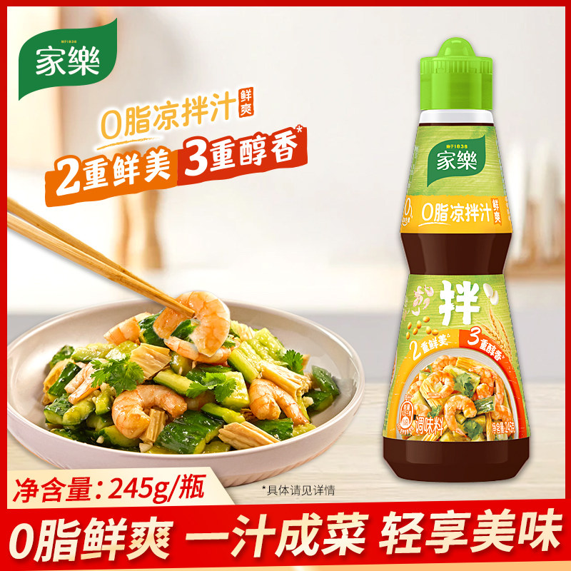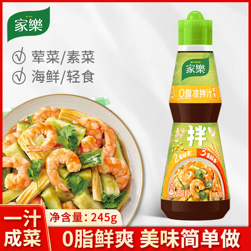 📚 家乐凉拌汁鲜爽0脂245g瓶装家用椒麻减油汁酸辣凉菜拌面凉拌鸡丝