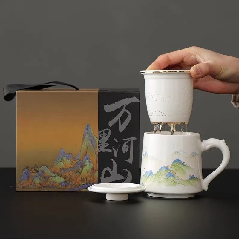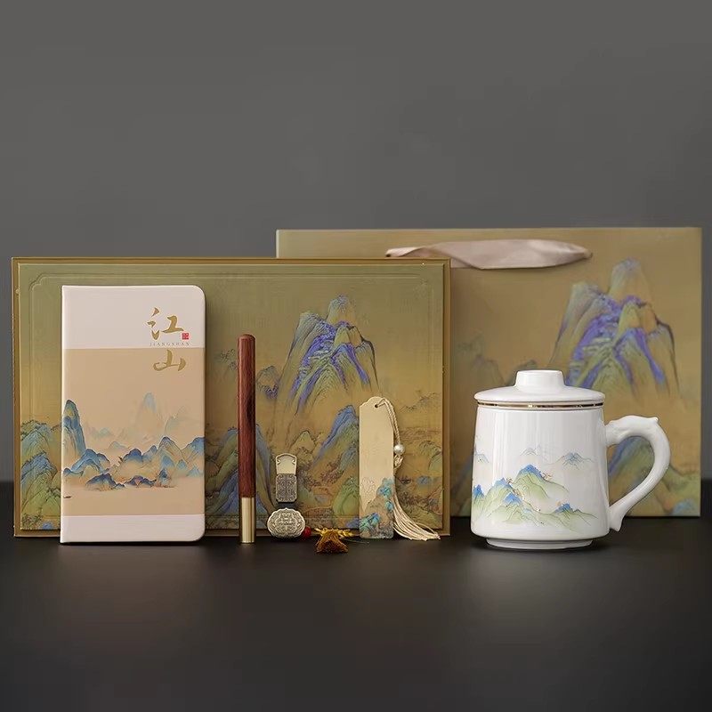 📚 中式山水画陶瓷茶杯礼盒装办公茶具套装支持定制个人企业礼品