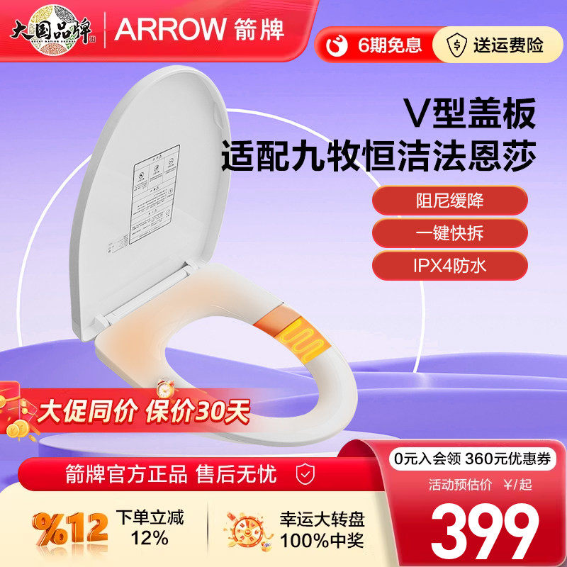 📚 箭牌智能马桶加热盖 适配九牧恒洁法恩莎V型盖板一键快拆阻尼缓降