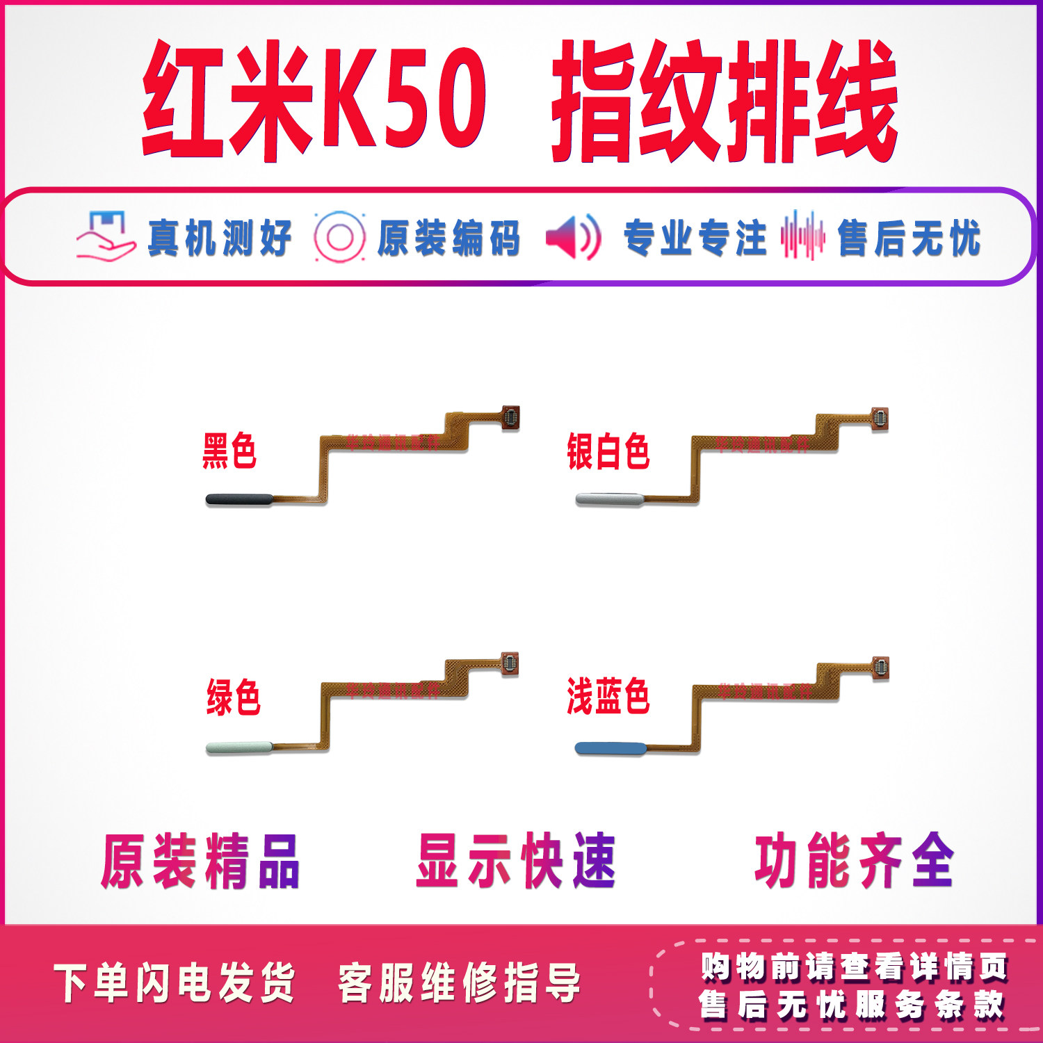 📚 适用于红米k50指纹排线 K50Pro指纹触摸解锁按键排线 开机键原装