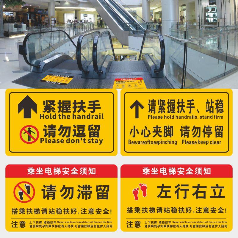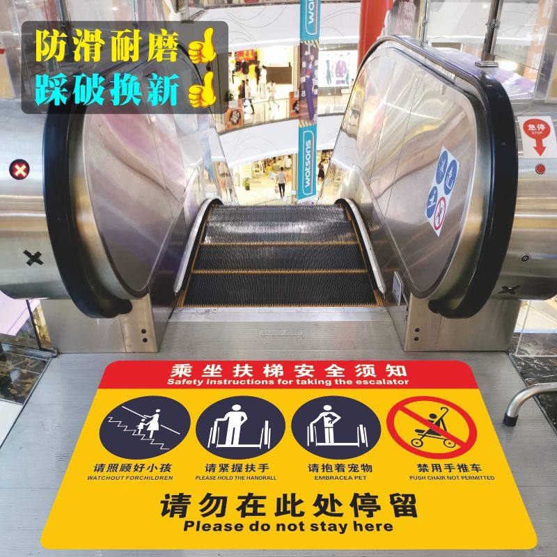 📚 乘坐扶梯安全须知提示地贴防水防滑耐磨商场地铁站车站请勿在此停留紧握扶手电梯口标识标志牌警示牌斜纹地贴