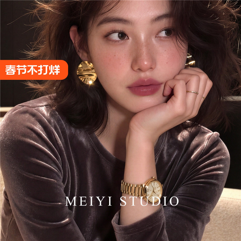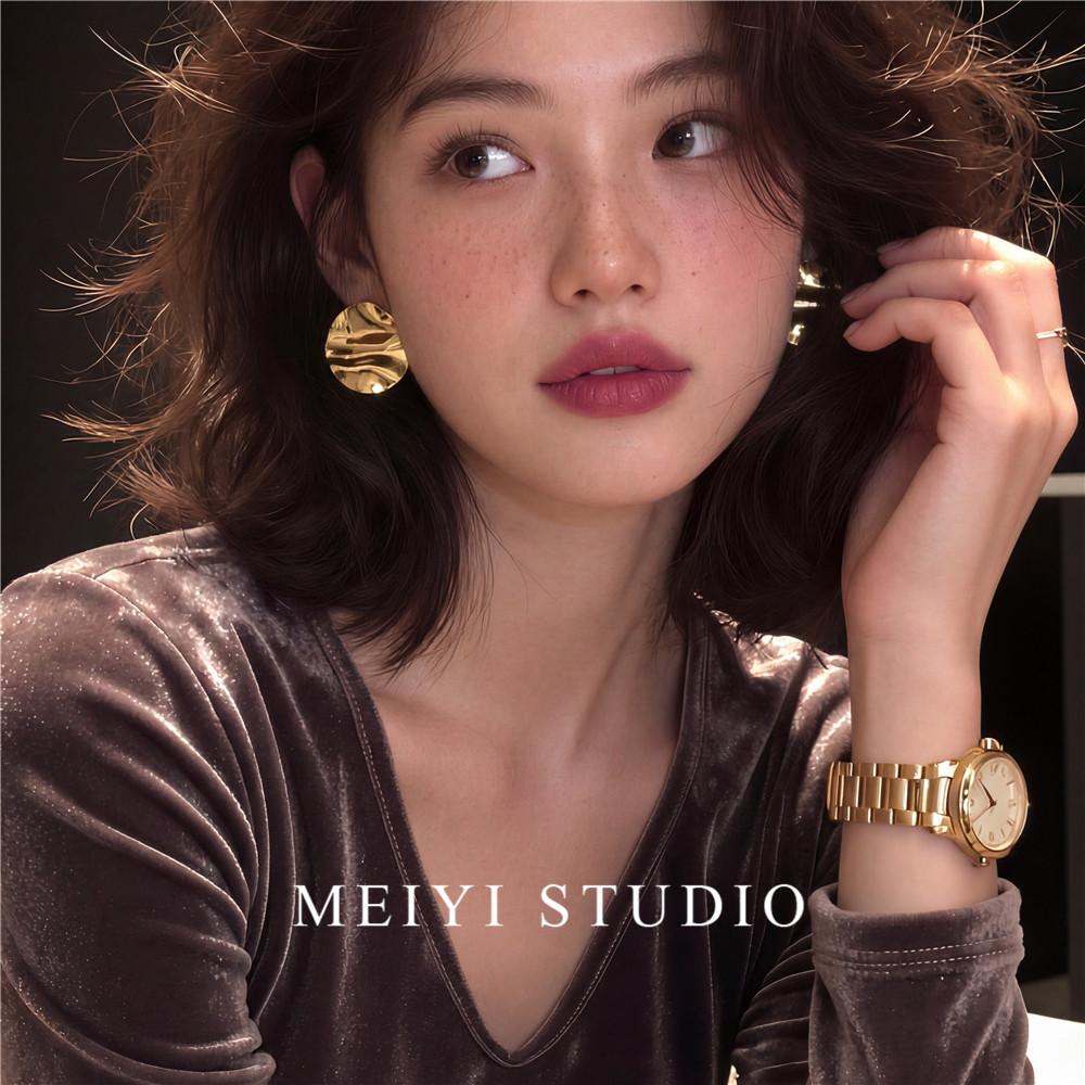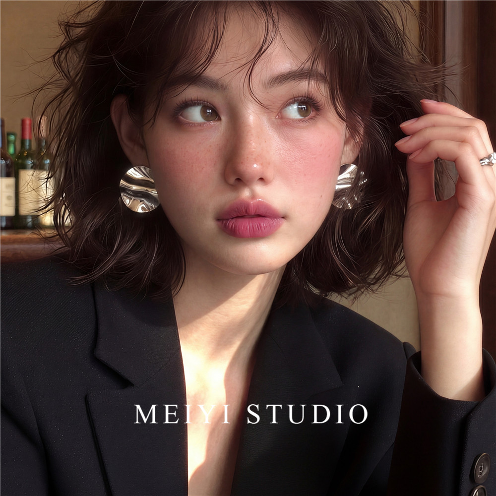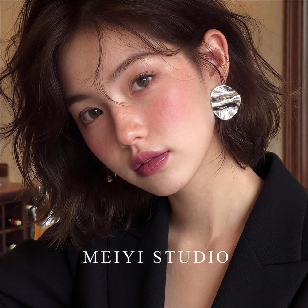 📚 流淌的光~法式精致褶皱金属圆形耳钉 高级感简约冷淡风气质耳环潮