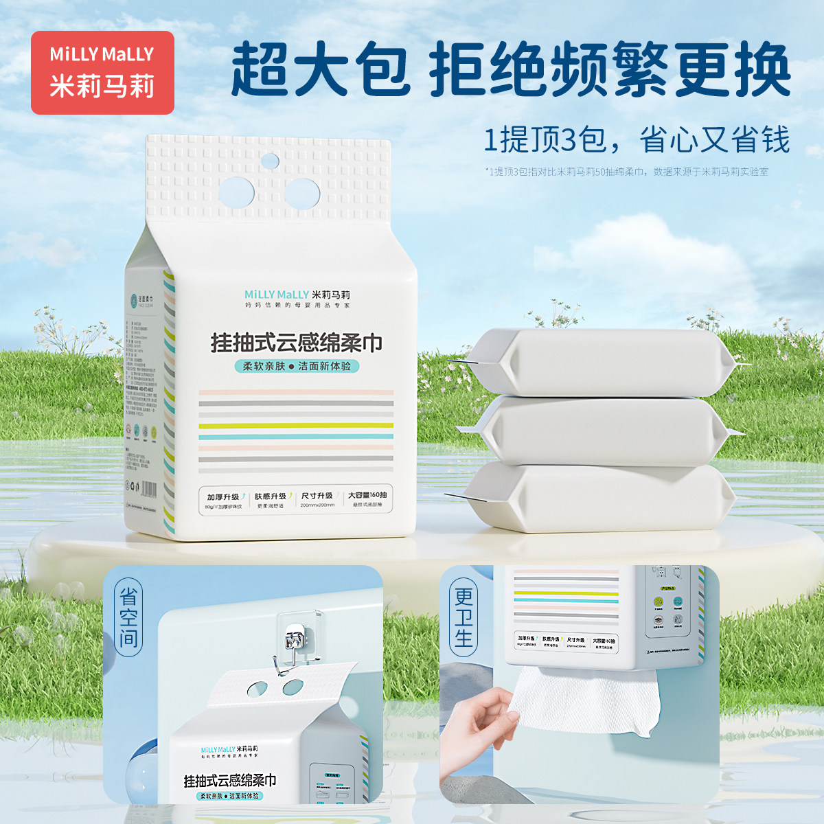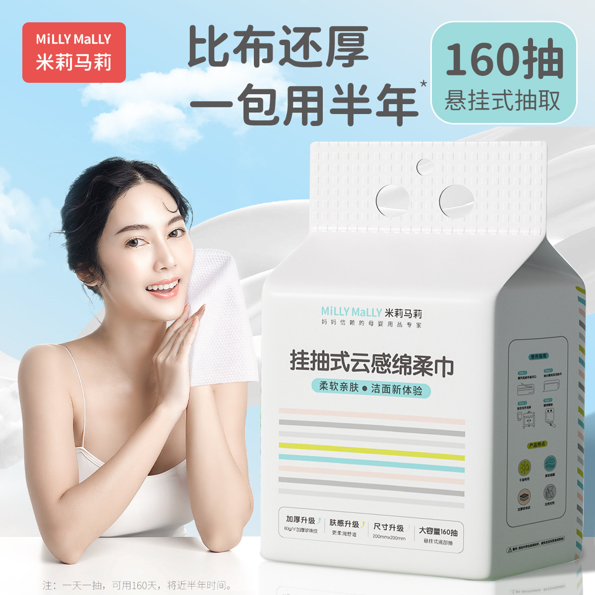 📚 【加大加厚】米莉马莉160抽洗脸巾壁挂式珍珠纹洁面云感绵柔巾