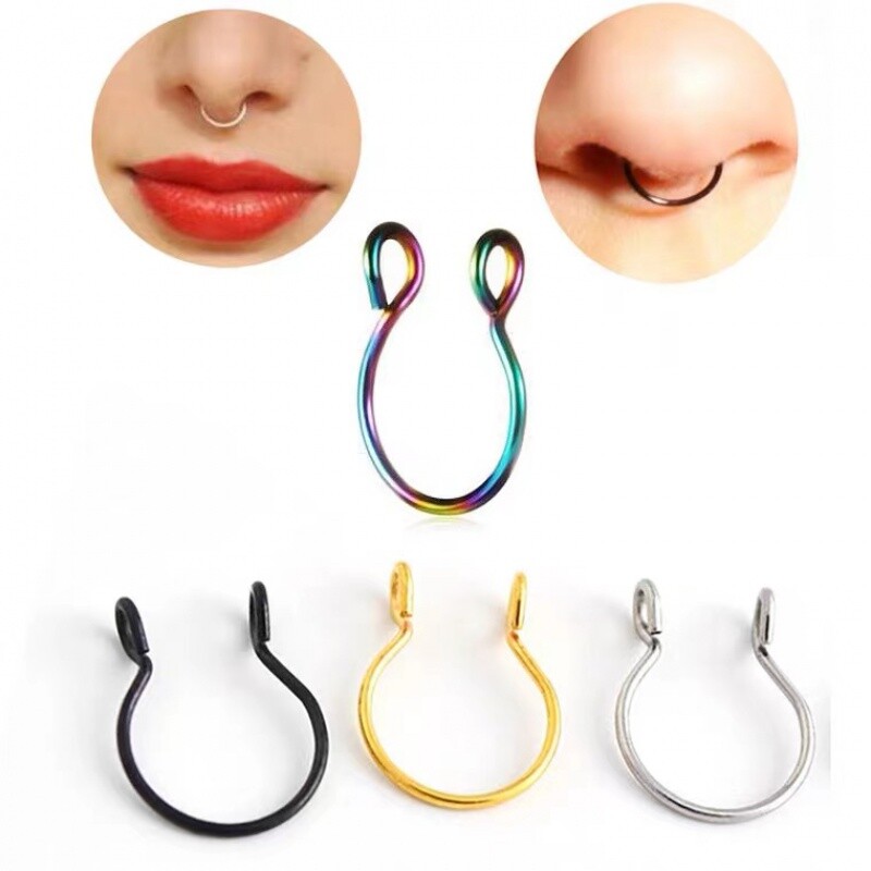 📚 钛洞款无钢假唇环假鼻夹耳u环唇夹鼻环耳夹耳钉唇钉多用环时尚个