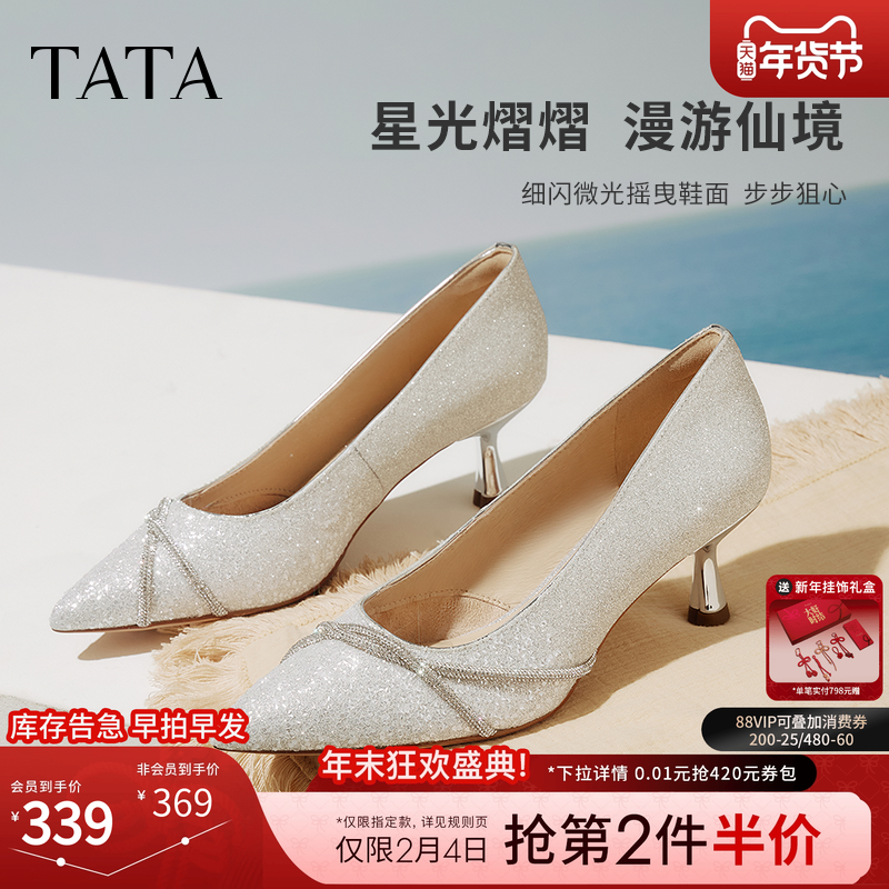 📚 TATA他她尖头高跟鞋女细跟婚鞋新娘鞋伴娘鞋2025浅口单鞋7QT08AQ5