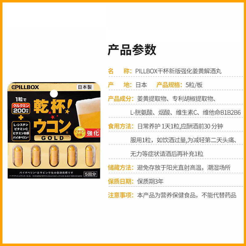 📚 万宁pillbox日本解酒药丸干杯神器护肝喝酒前后不醉醒酒药干姜黄