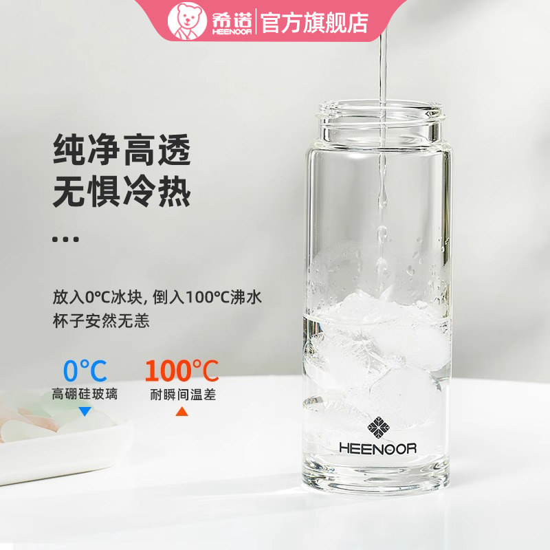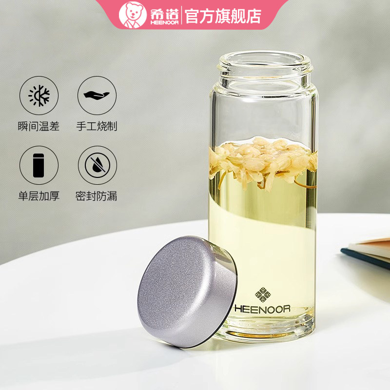 📚 希诺单层玻璃杯女加厚杯子带盖花茶杯高颜值小巧便携家用喝水水杯