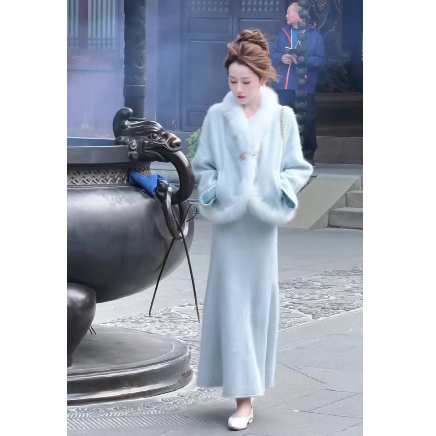 📚 温柔风时尚套装裙女2025冬季新款毛毛拼接上衣+高腰半身裙两件套