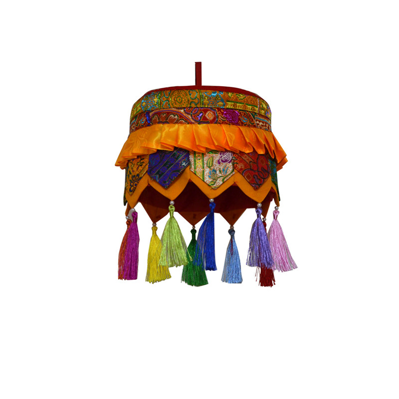 📚 包邮藏式小号民族风格彩色布艺室内挂件装饰佛像上方圆形佛宝伞幢