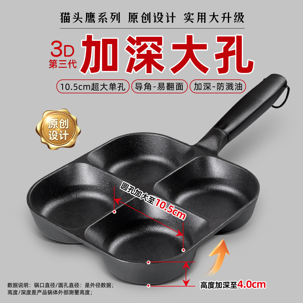 📚 九铸加深四孔锅铸铁锅蛋饺神器煎蛋不粘锅无涂层鸡蛋汉堡煎锅家用
