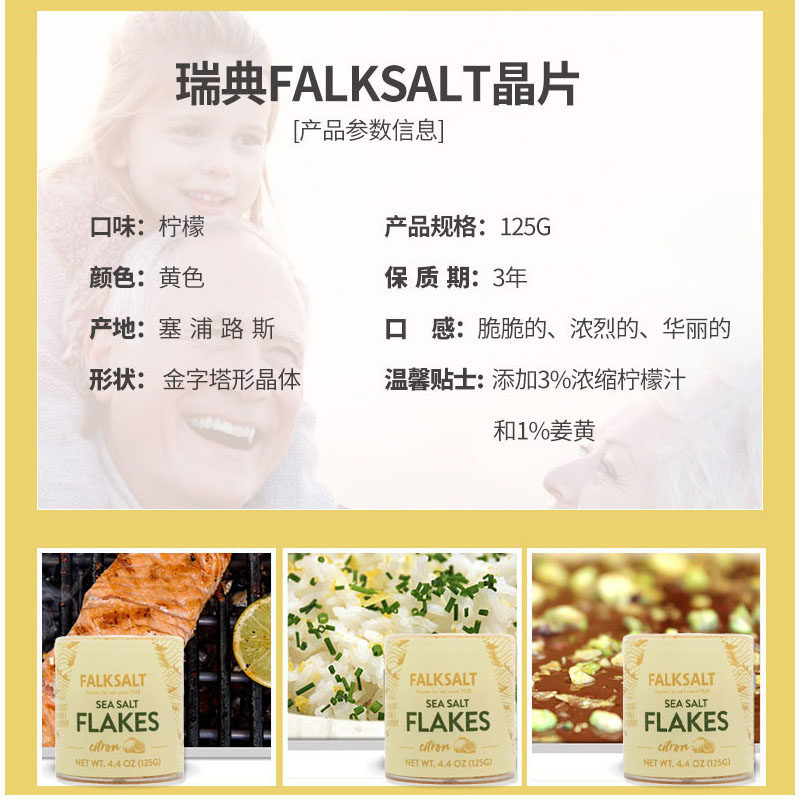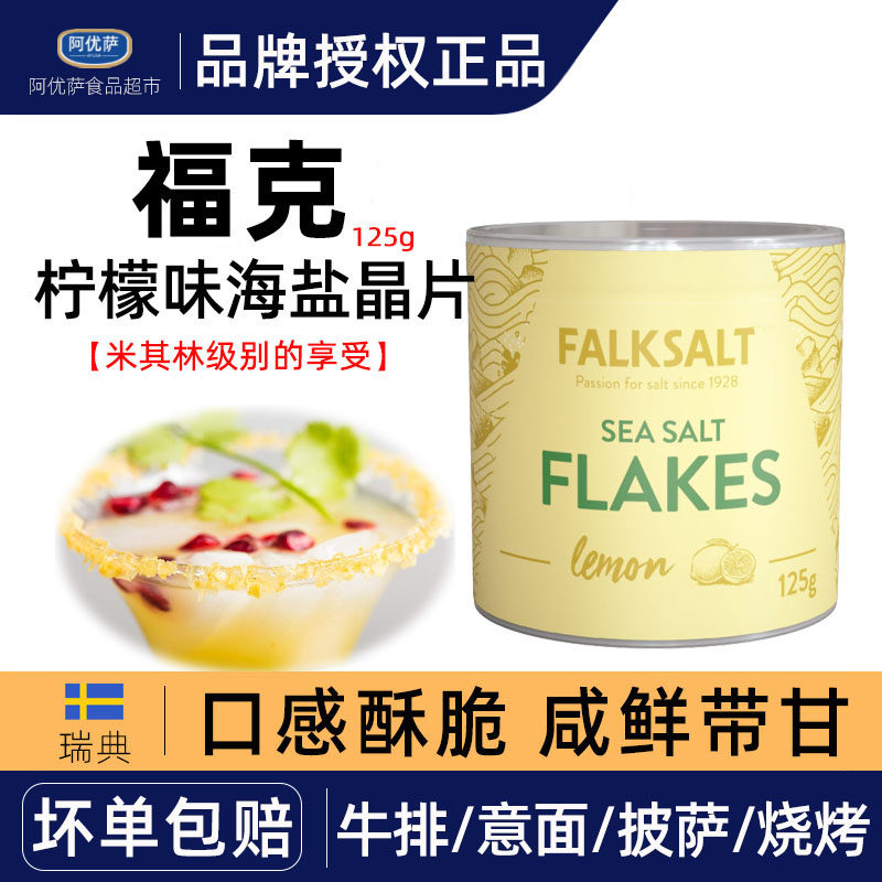 📚 福克柠檬海盐调味料原味晶片125g黑色烘焙牛排西餐用塞浦路斯进口