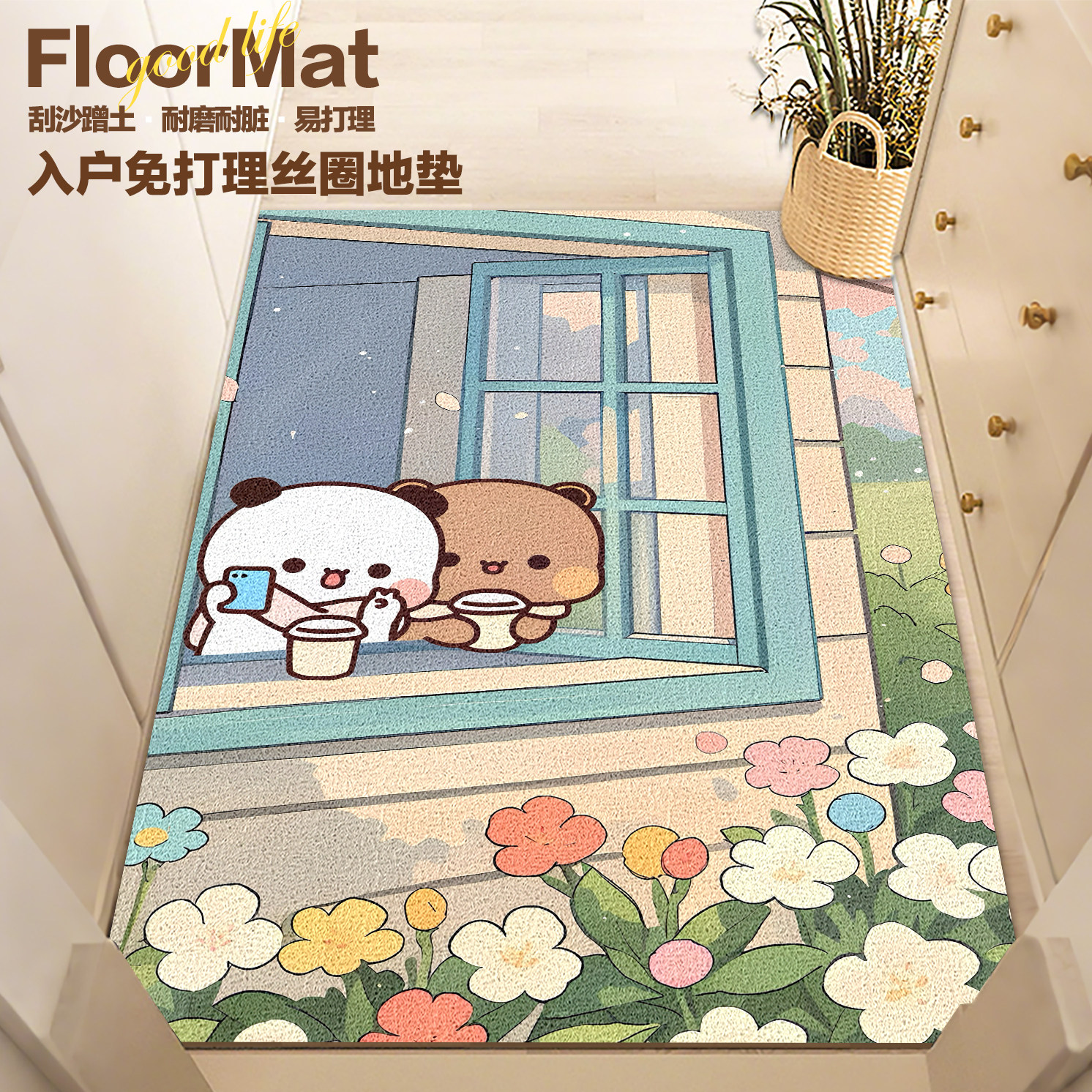📚 竖版一二布布入户门室内丝圈地垫线圈玄关脚垫门口进门垫可裁地毯