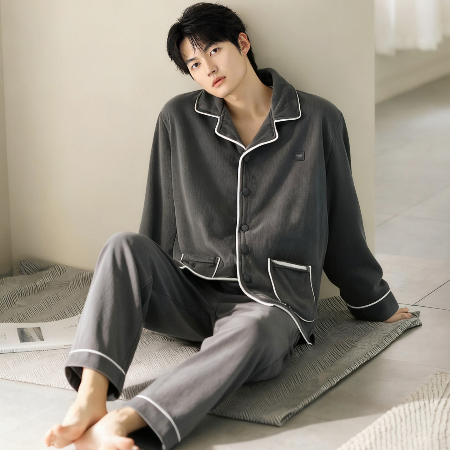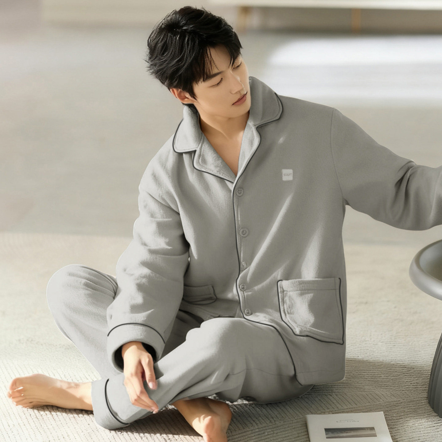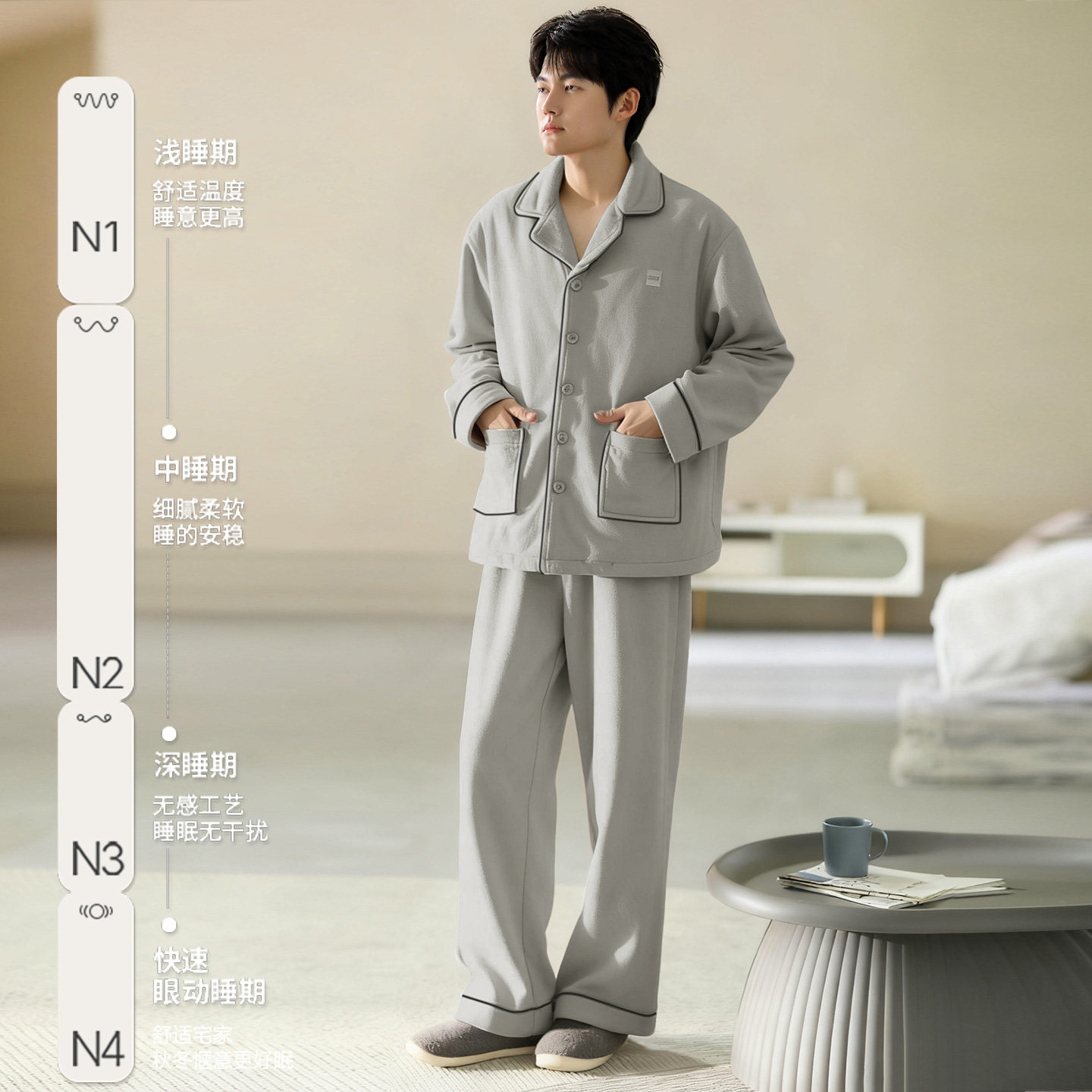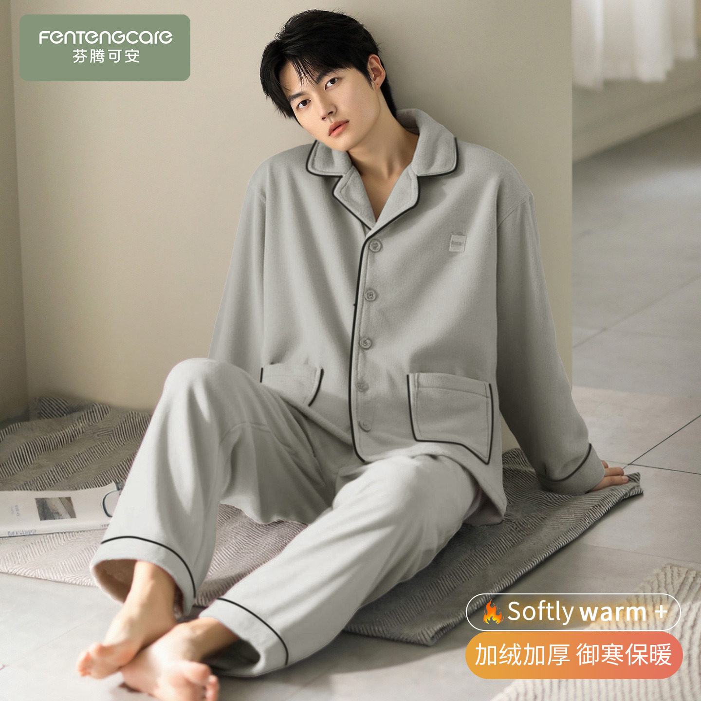 📚 芬腾可安男士睡衣男款冬季珊瑚绒加厚法兰绒大码浅灰家居服秋冬天