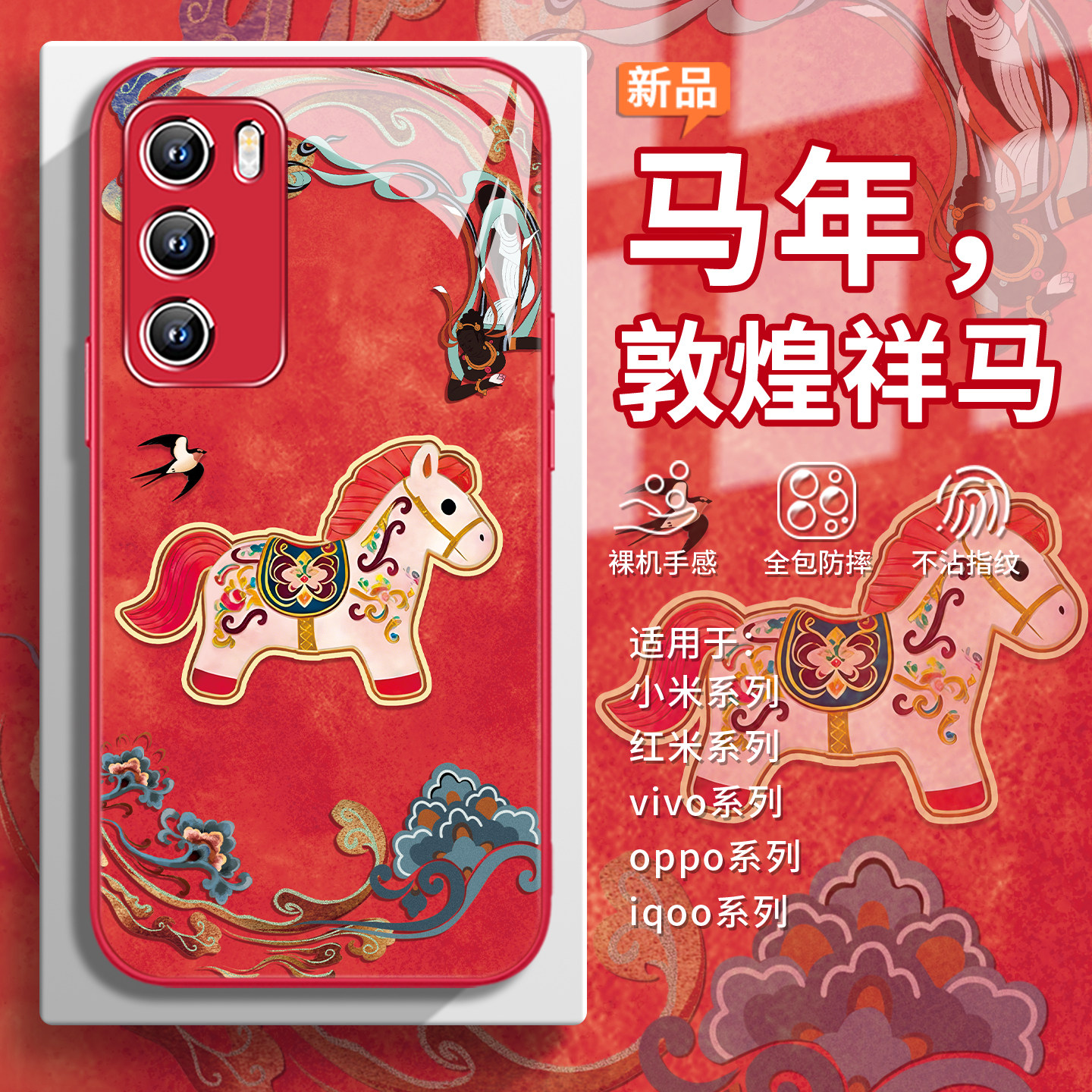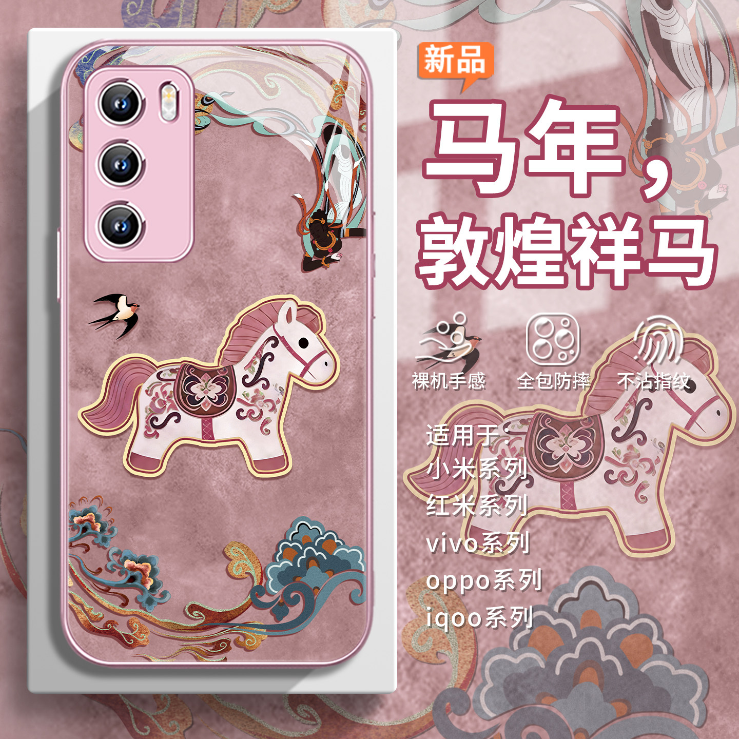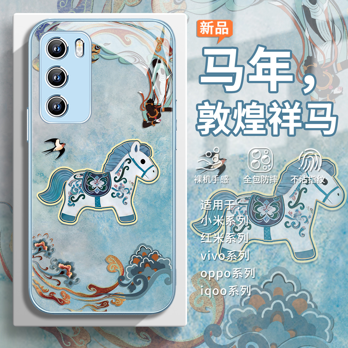 📚 适用敦煌风小马vivox300pro手机壳新年opporeno14小众高级感iqoo15马年小米17古风x200女款s50玻璃x200/x100