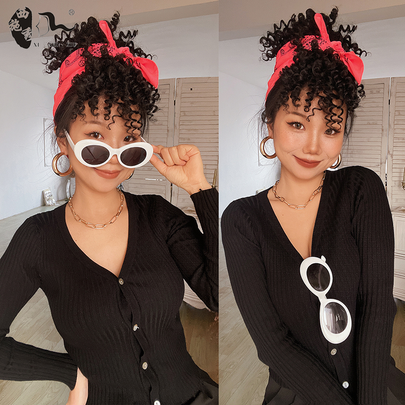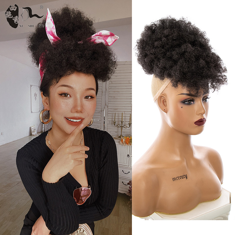 📚 Afro kinky curly headband wigs clips hair puff非洲假发苞马尾