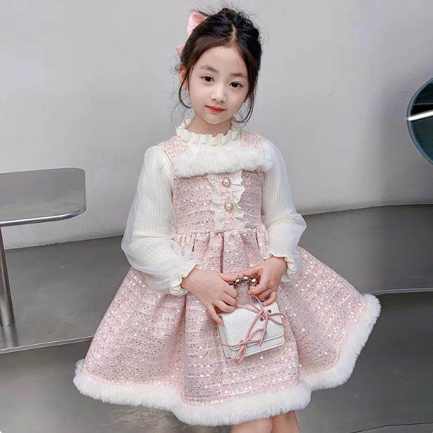 📚 女童连衣裙秋冬款2024新款洋气儿童小香风套装小女孩冬季加绒裙子