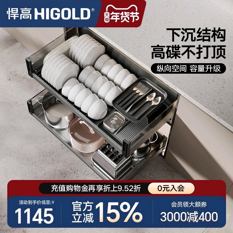 💥"悍高厨房神器!不锈钢拉篮拉篮抽屉式碗架,券后仅¥1464.3!"💖