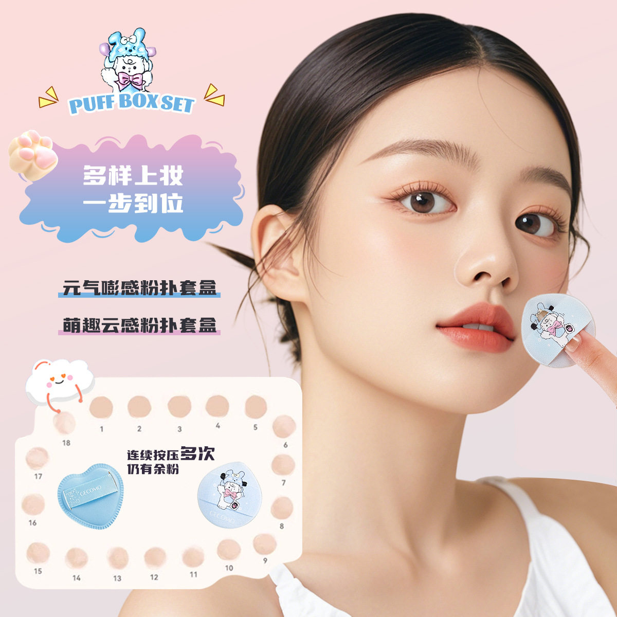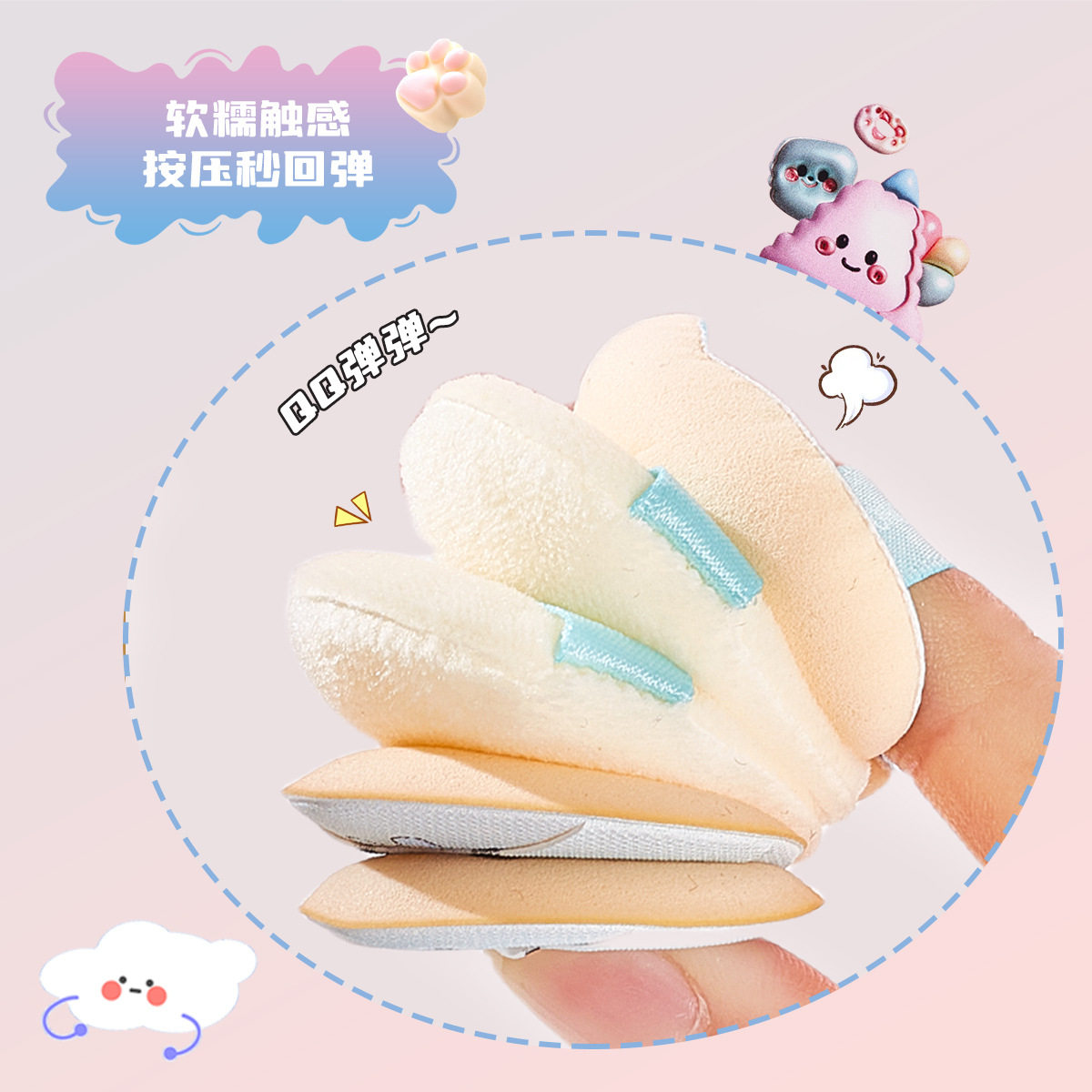 📚 GECOMO萌趣云感粉扑套盒 植绒海绵定妆提亮腮红遮瑕手指粉扑工具