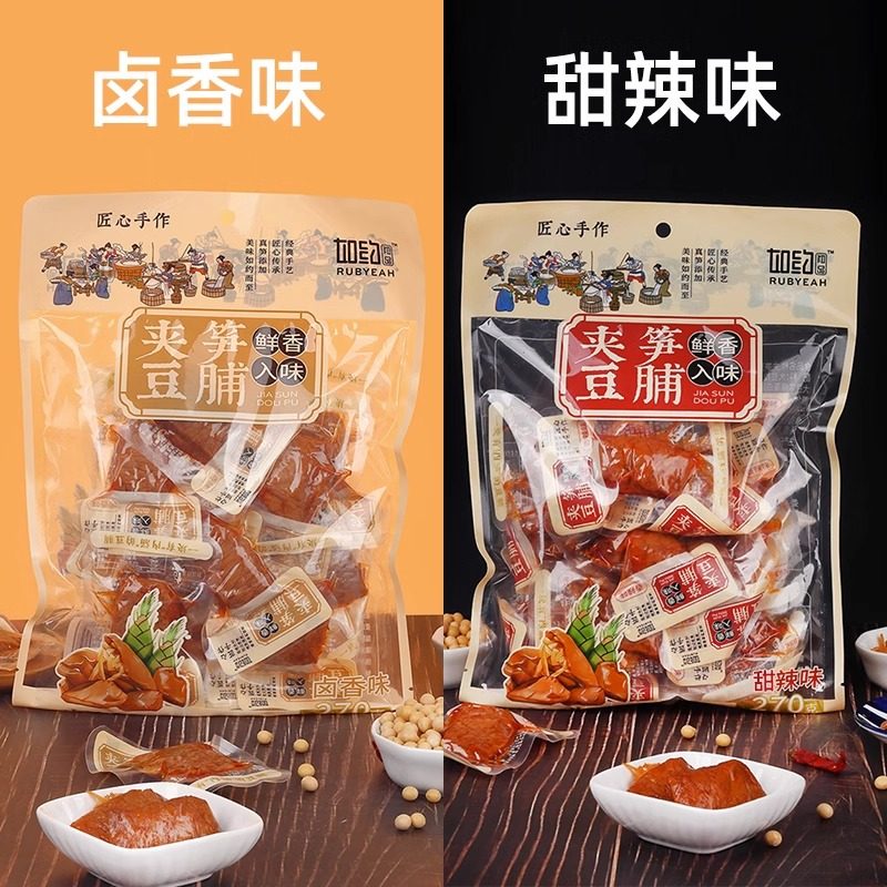 📚 如约夹笋豆脯咸蛋黄夹心笋丝豆腐干烤肉香辣入味手撕素肉卤味零食