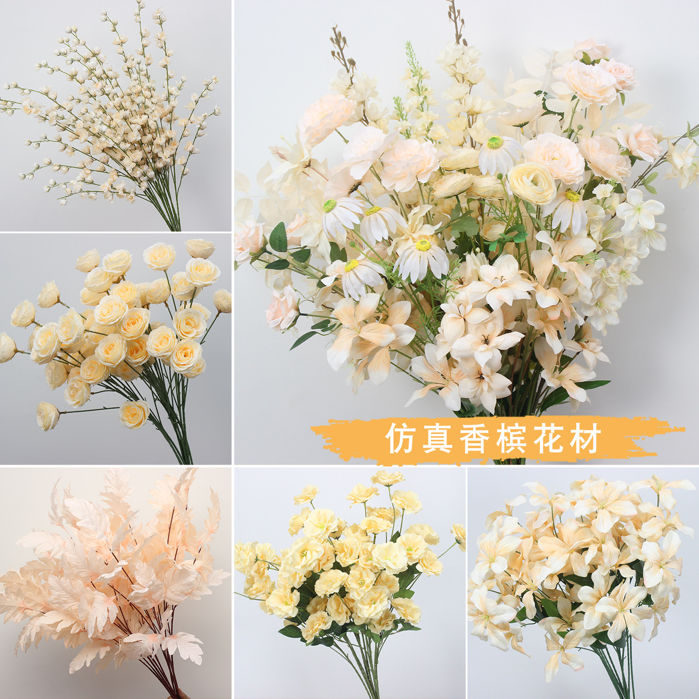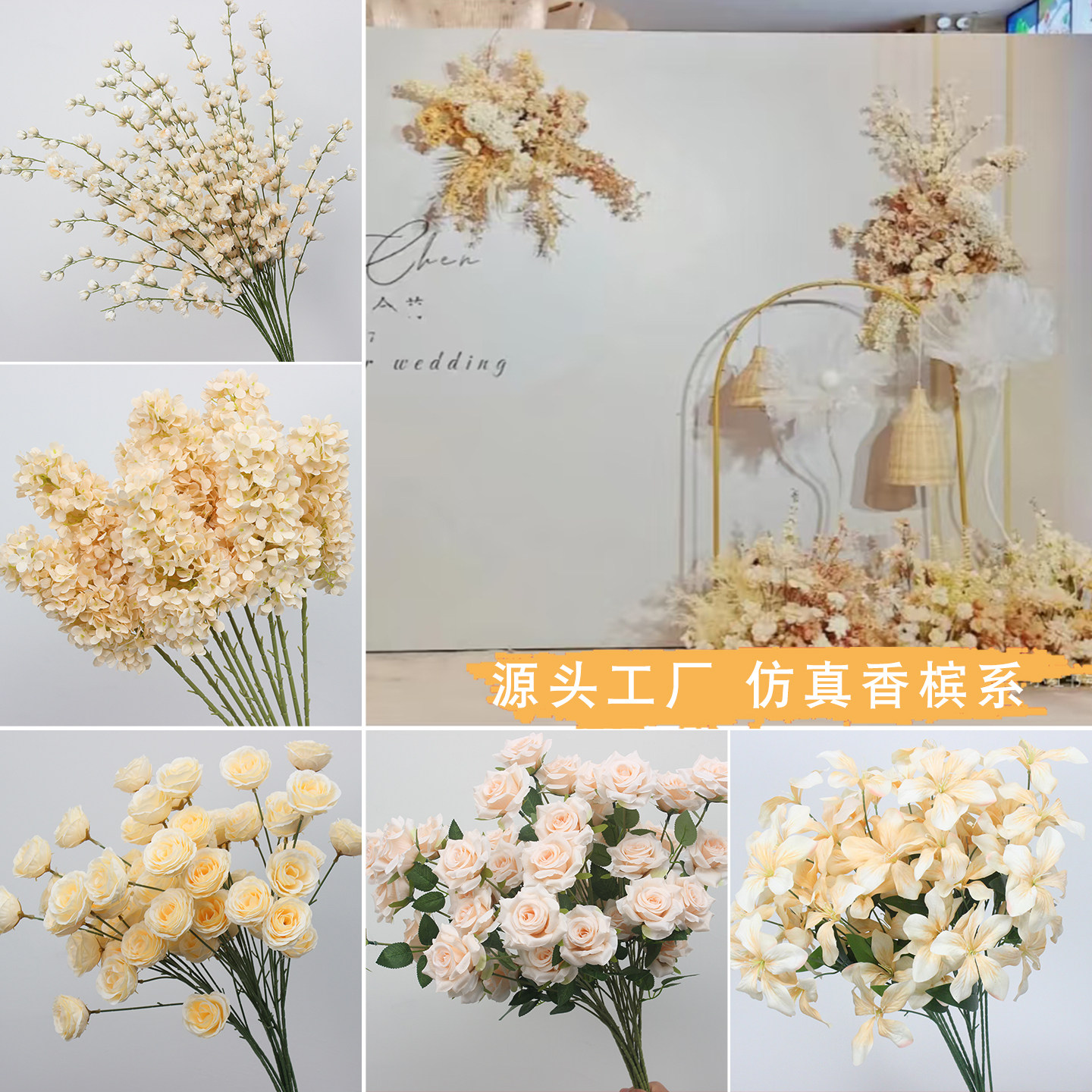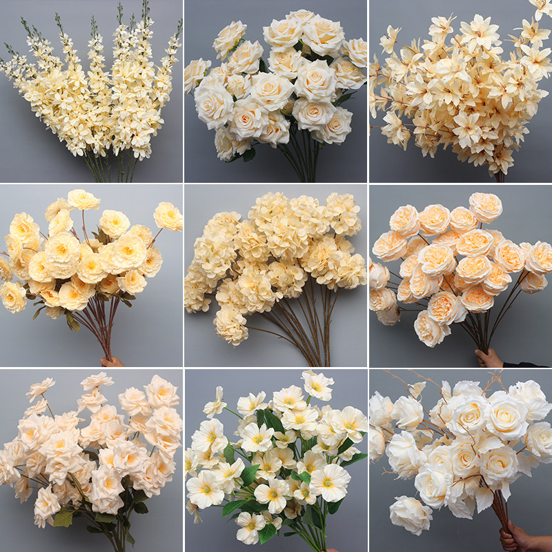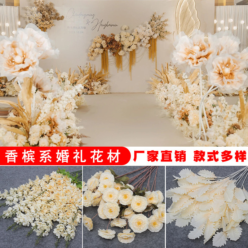 📚 香槟色仿真花婚庆布置假花装饰花材绢花婚礼花艺假花吊顶花路引花