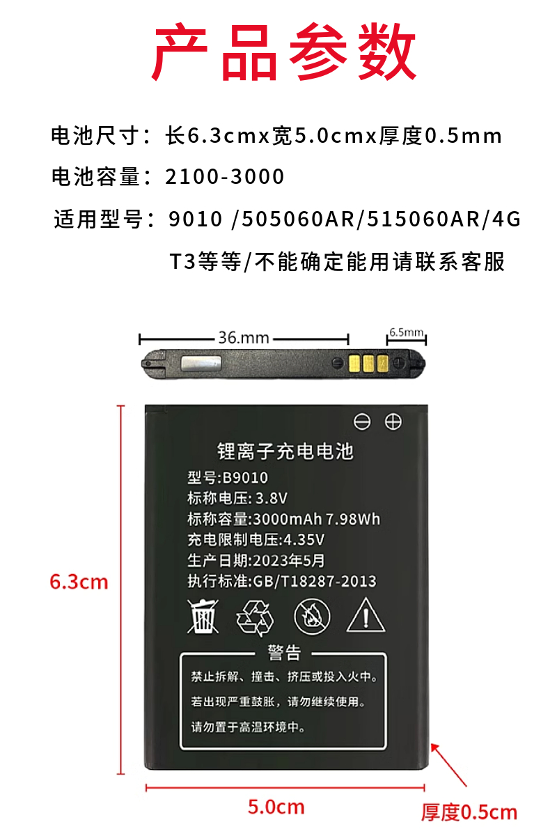 📚 全新正品B9010 505060AR 515060AR T3锂离子充电电池随身WiFi电板
