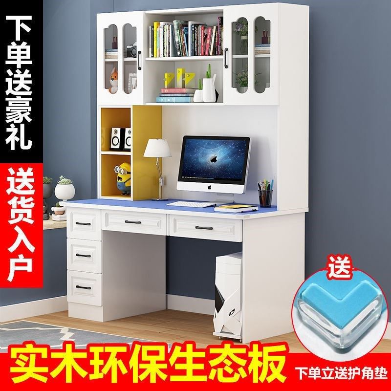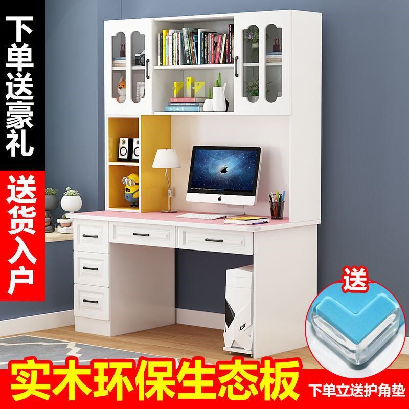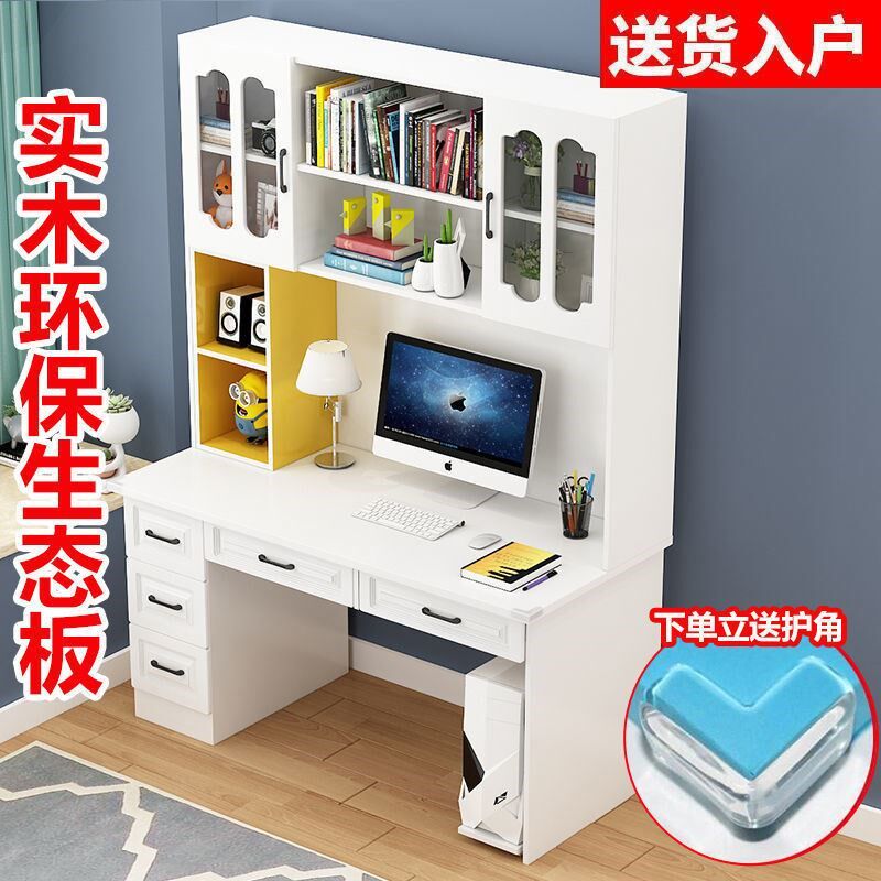 📚 实木书桌现代简约台式电脑桌书架一体家用儿童学习写字桌书柜组合